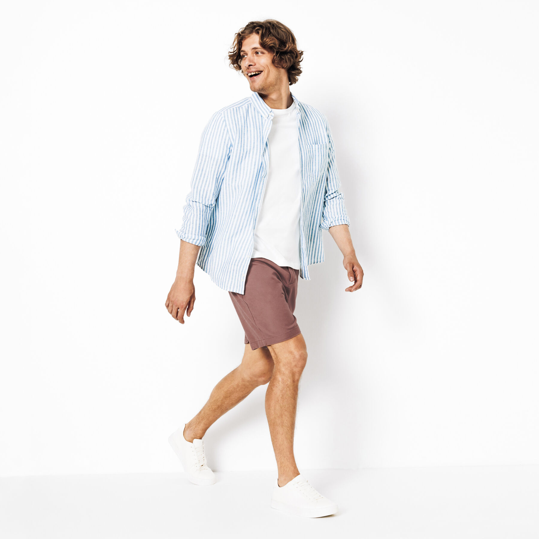 Ce bermuda en twill est un indispensable pour l’été.En twill : tissage particulier, reconnaissable à ses fines lignes obliques2 poches italiennes sur le devant2 poches passepoilées à l’arrièreFermeture zippéePassants pour ceintureEntrejambe : 20,5 cmConfectionné avec 20% de linCe bermuda s’associe parfaitement avec une chemise à manches courtes et des baskets blanches pour un look décontracté et estival.Le mannequin mesure 1m86 et porte du 40.