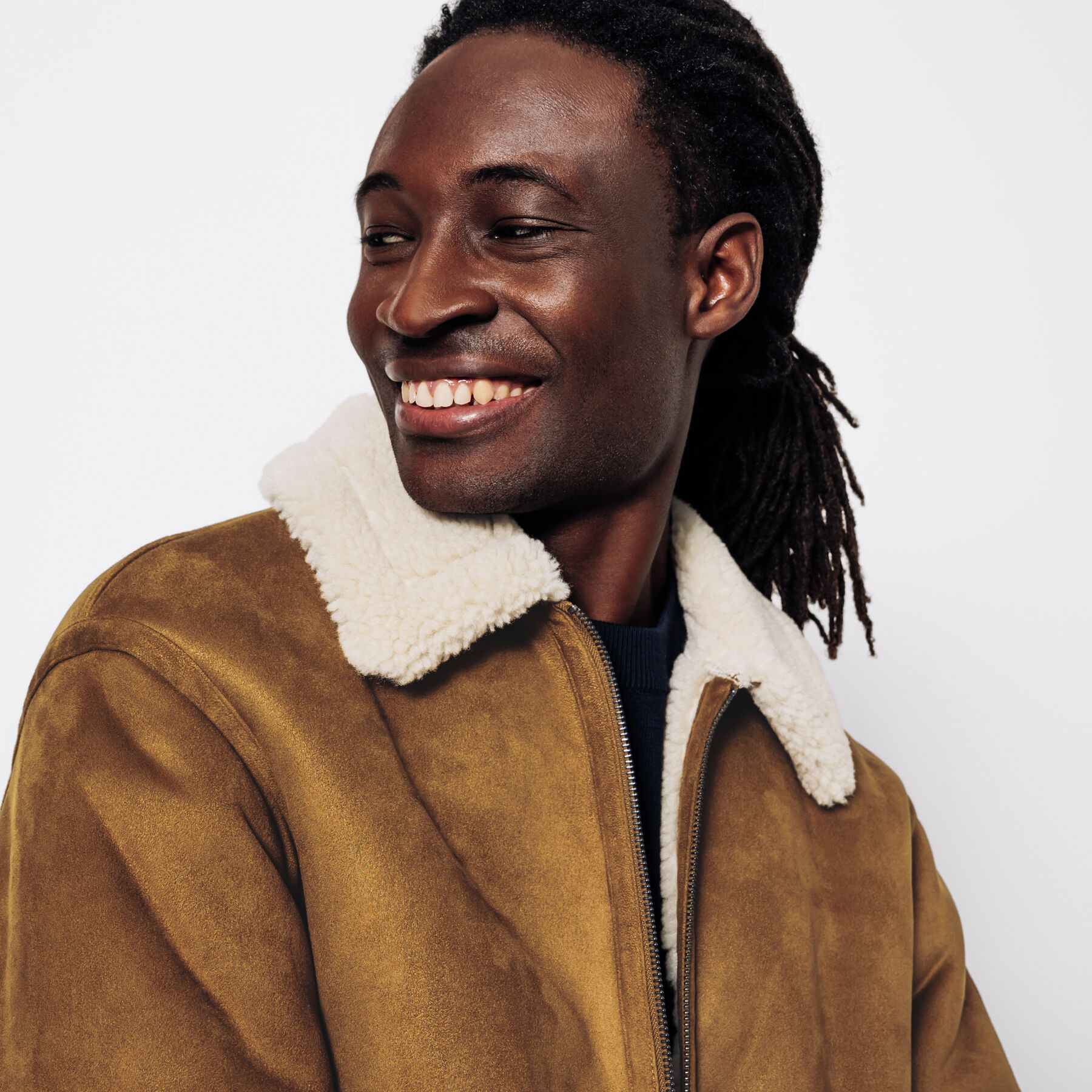 Envie d’un look stylé et décontracté ? Ce blouson bombardier en sherpa, inspiré des vestes d’aviateur, est fait pour vous.Col chemiseFermeture zippéeDeux poches sur le devantPas de poche intérieureDoublure intérieure en sherpaColoris camel : matière aspect veloursColoris marron et noir : matière effet peau grainéeLe mannequin mesure 1m86 et porte du L.