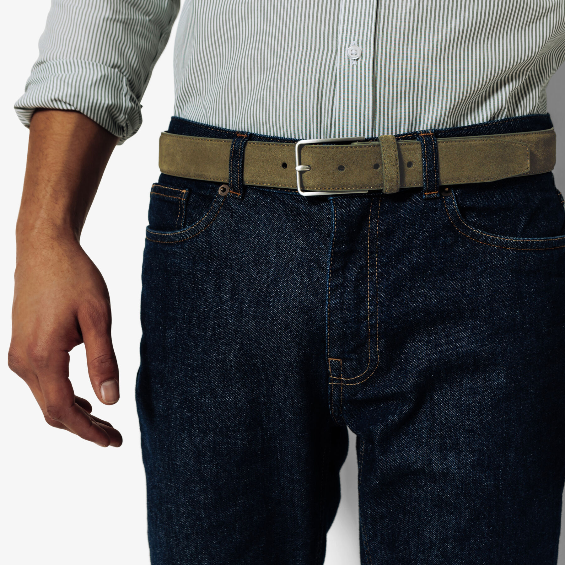 Ajoutez une touche d’élégance à votre tenue avec cette ceinture en cuir suédé à boucle. Un accessoire sobre et moderne qui s’accordera facilement à votre garde-robe.Ceinture en cuir suédéBoucle métallique Largeur de la sangle : 29 mmSurpiqûres ton sur tonVous pouvez la porter avec un chino et une chemise pour un look casual chic.