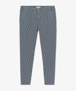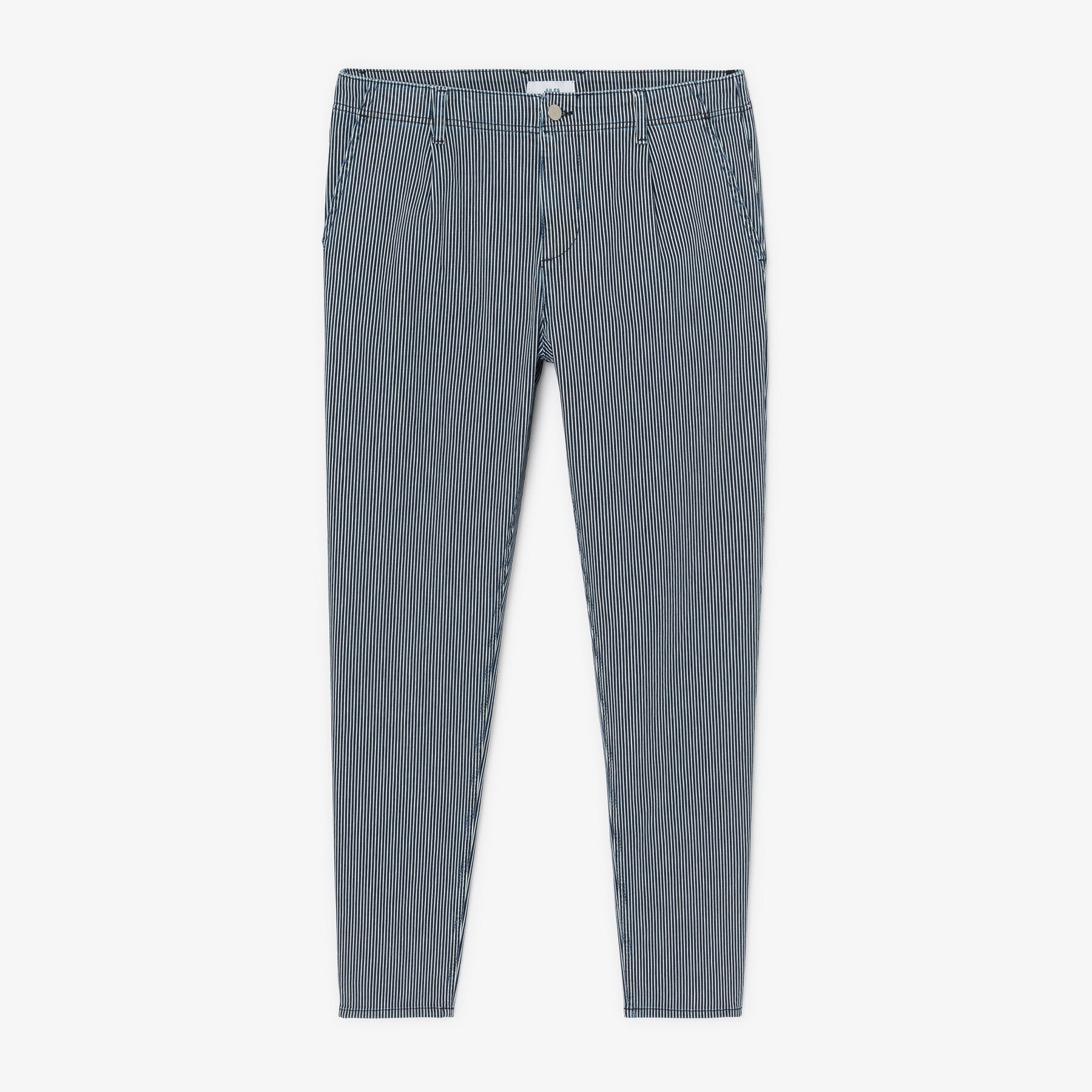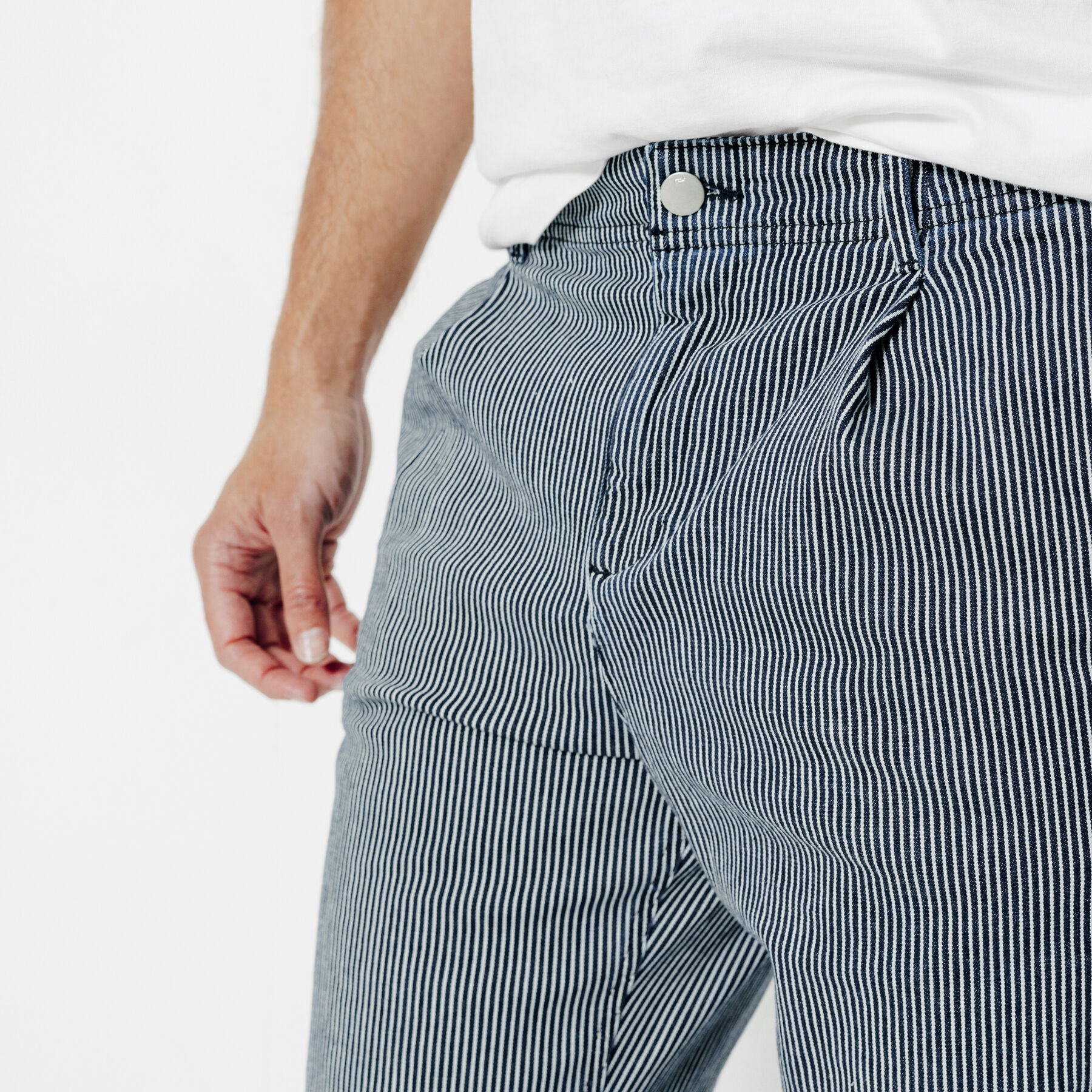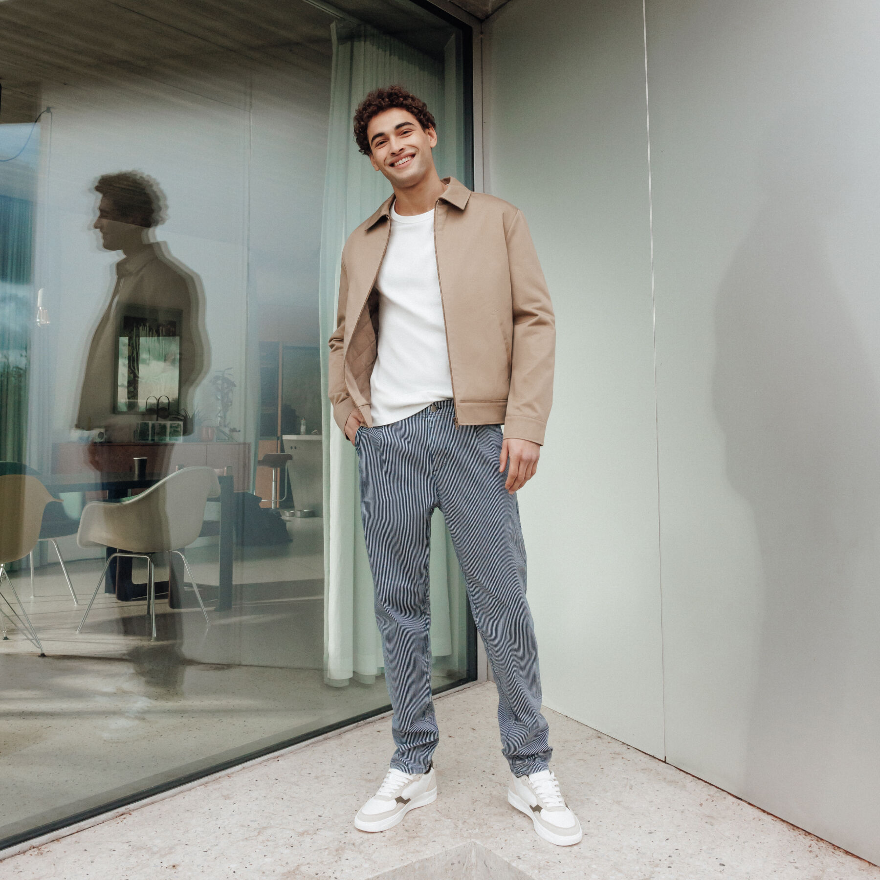 Adoptez un look décontracté et tendance avec ce jean loose à plis rayé. Sa coupe loose et ses détails soignés en font une pièce maîtresse de votre garde-robe.Coupe loose : large à la coupe ample du bassin jusqu’au bas de jambePliures marquées sur le devant2 poches italiennes à l’avant2 poches passepoilées à l’arrièrePassants pour ceintureFermeture zippée100% coton pour un confort respirantLongeur d’entrejambe : 81 cmEn set avec la veste en jean : 1006402Ce pantalon à rayures verticales se marie parfaitement avec un sweat blanc à col rond pour un look décontracté et tendance. Vous pouvez compléter votre tenue avec des chaussures marrons pour un style élégant et confortable.Le mannequin mesure 1m86 et porte du 40.