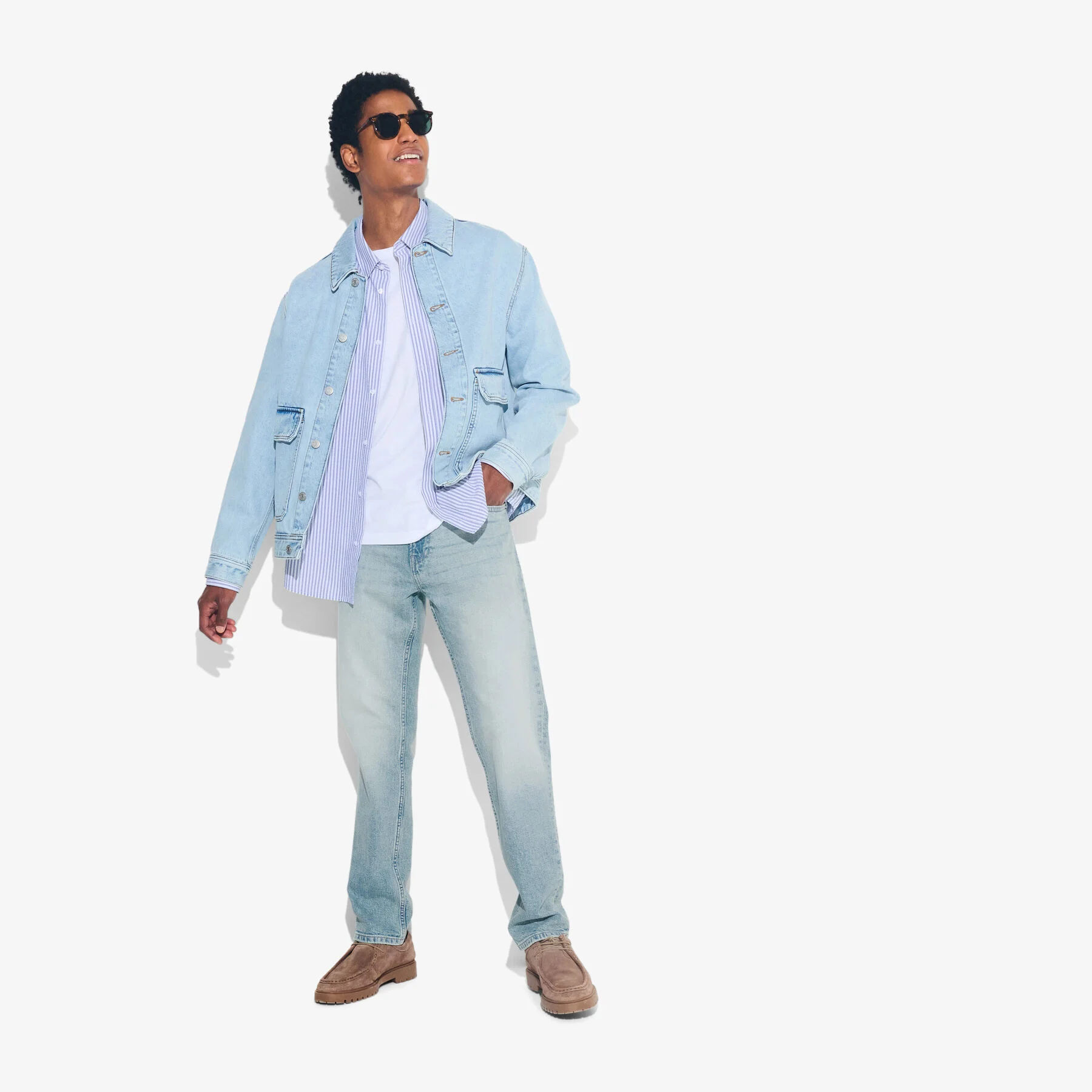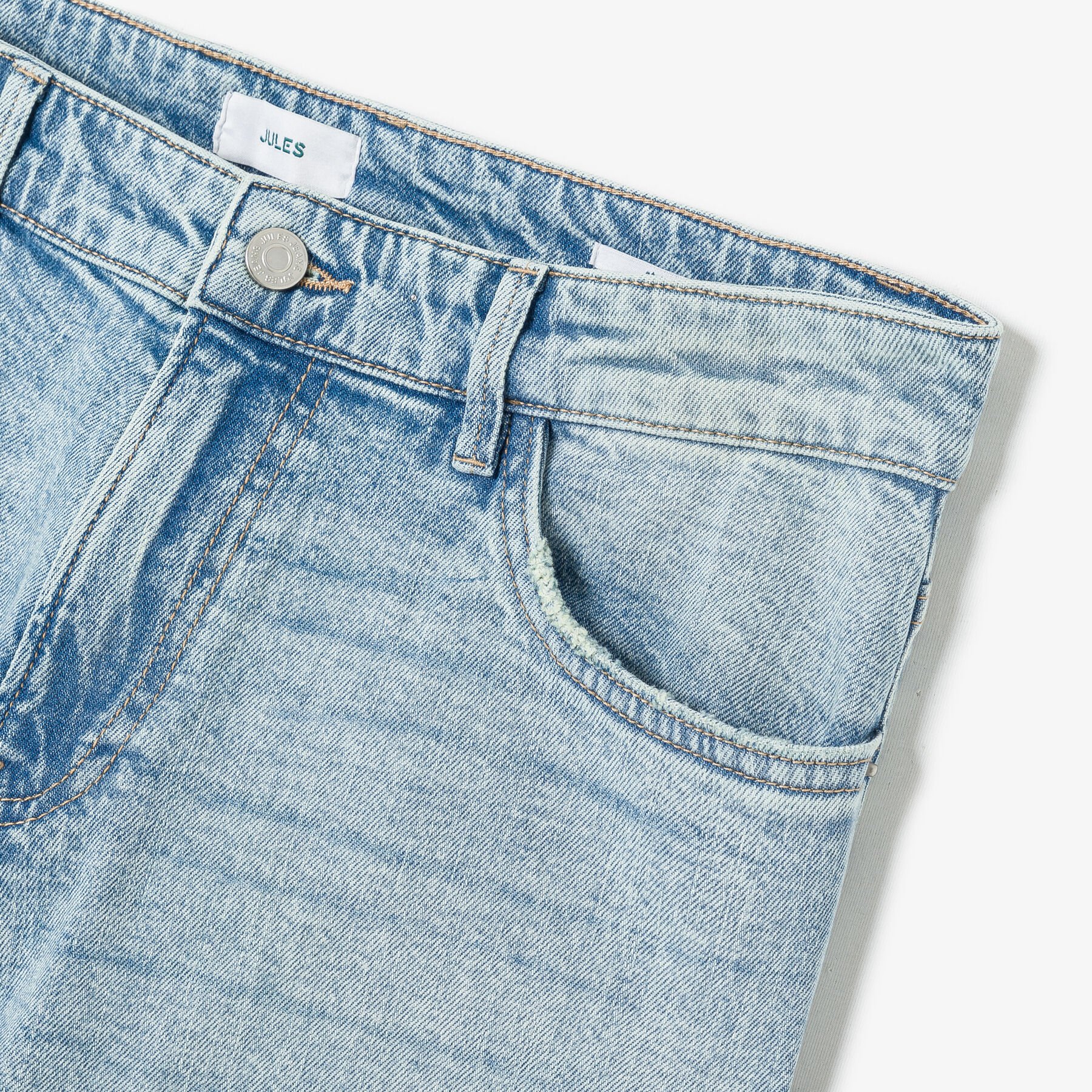 Ce jean straight, disponible en 4 longueurs, est un essentiel à avoir dans son dressing. Il s’associe facilement à toutes vos tenues, du look décontracté au style plus habillé.Coupe straight : relâchée sur la cuisse et le bas de jambeDisponible 4 en longueurs 2 poches à l’avant avec poche ticket2 poches plaquées à l’arrièreJacron Jules au dosFermeture zippéePassants pour ceinture20% de coton recycléCe jean droit se porte facilement avec un t-shirt blanc basique et des chaussures marrons. Pour un look plus travaillé, on peut ajouter une surchemise en jean et une chemise à rayures.Le mannequin mesure 1m86 et porte du 40.