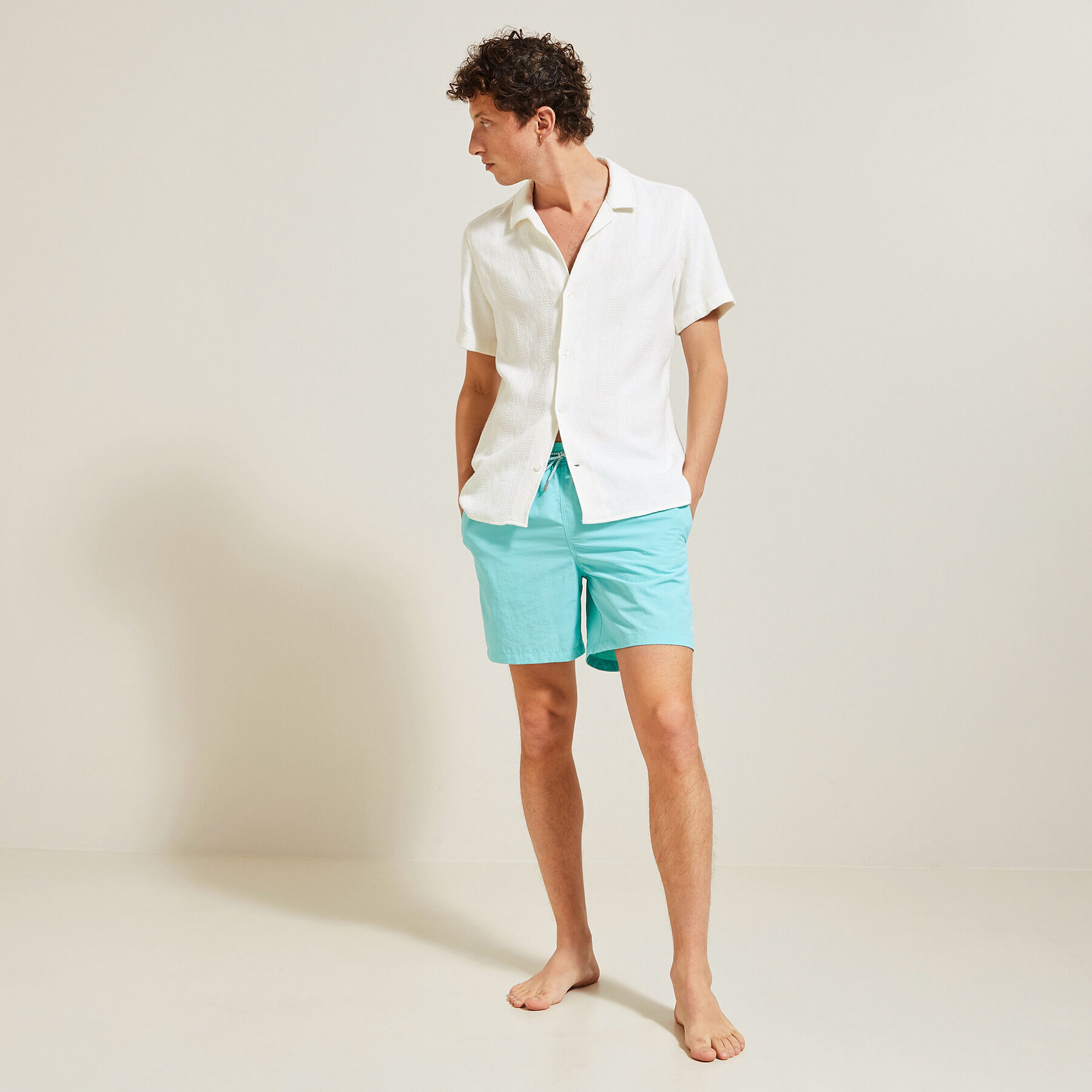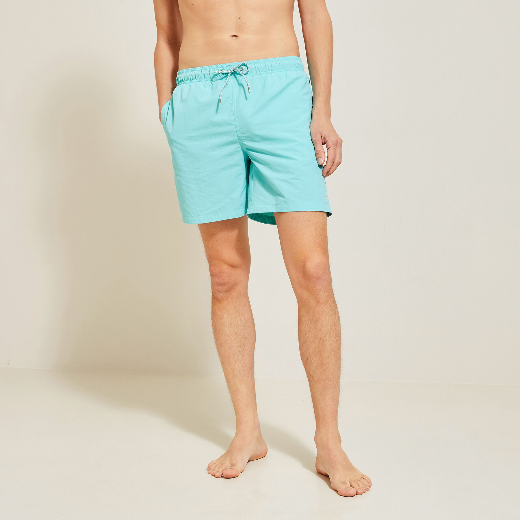 Ce maillot de bain uni, vous offre tout le confort nécessaire pour cet été. Grâce à sa taille élastiquée et à son cordon de serrage, il s’adapte à votre morphologie.Taille élastiquée avec cordon de serrage2 poches avantPoche fermée par velcro à l’arrièreSlip intérieur100% polyester recycléAlexis mesure 1m93 et porte une taille M.