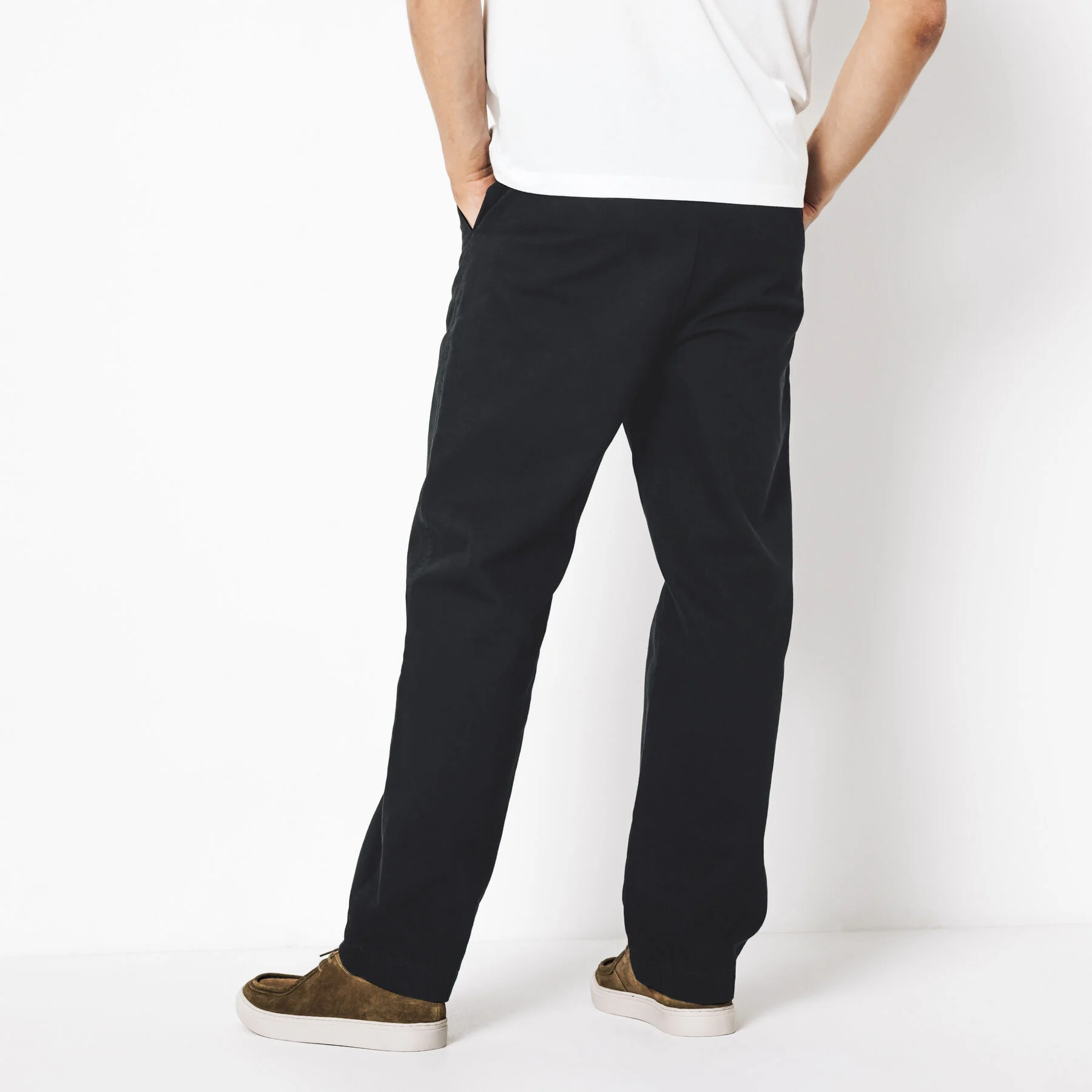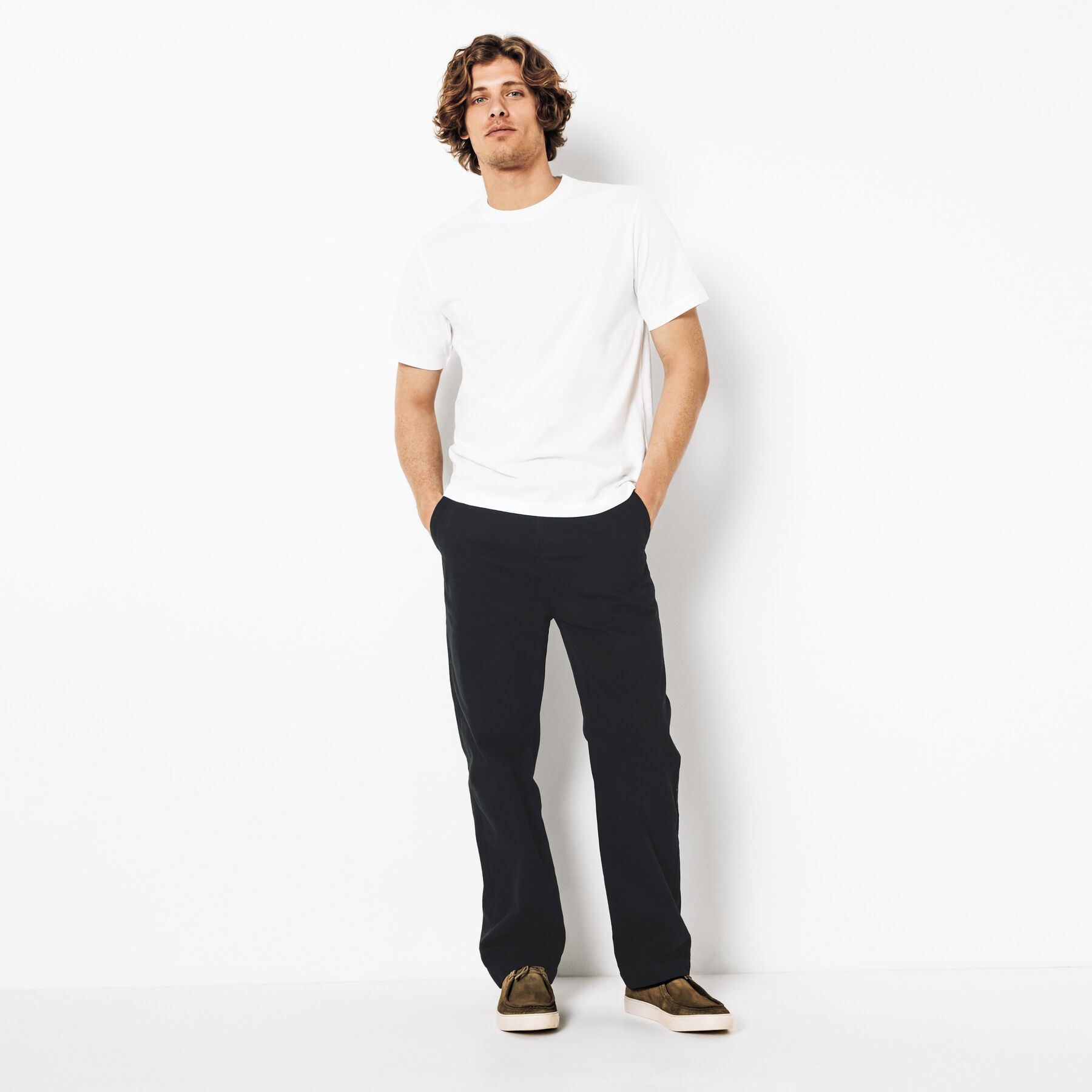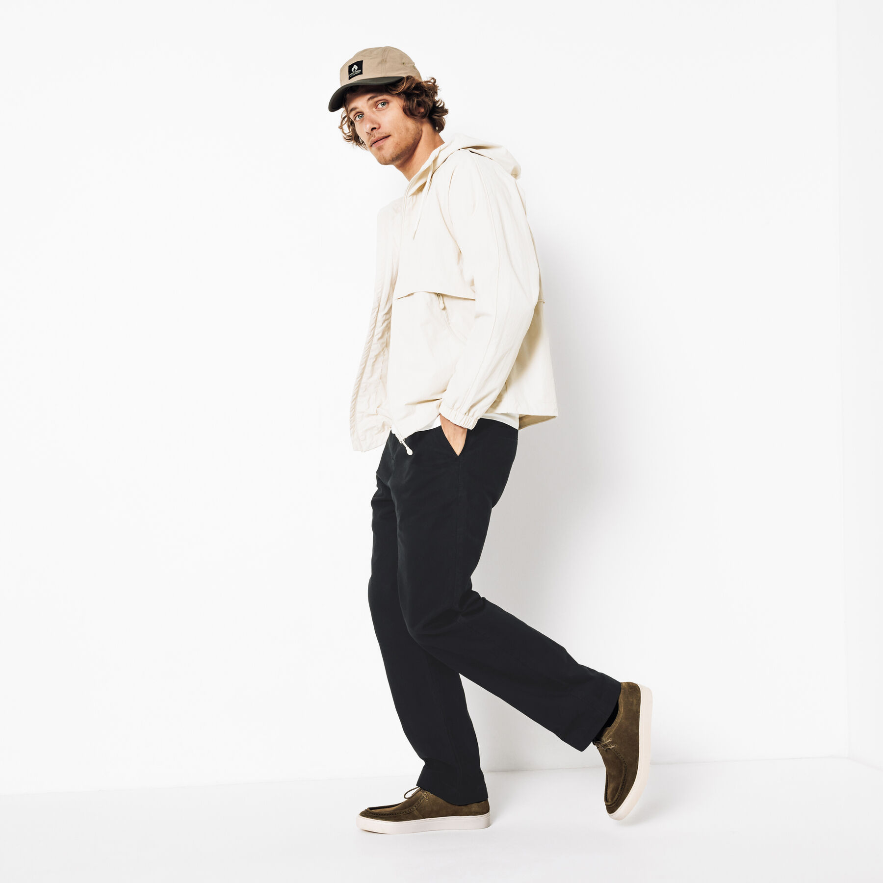 Ce pantalon chino loose, à la fois décontracté et élégant, est un indispensable du vestiaire masculin. Sa coupe droite et ses finitions soignées font de lui un choix idéal pour un look moderne et facile à porter.Coupe loose : large à la coupe ample du bassin jusqu’au bas de jambeFermeture zippéeCeinture avec passantsPoche passepoilée sur le devant 2 poches sur les côtés Le mannequin mesure 1m86 et porte du 40.