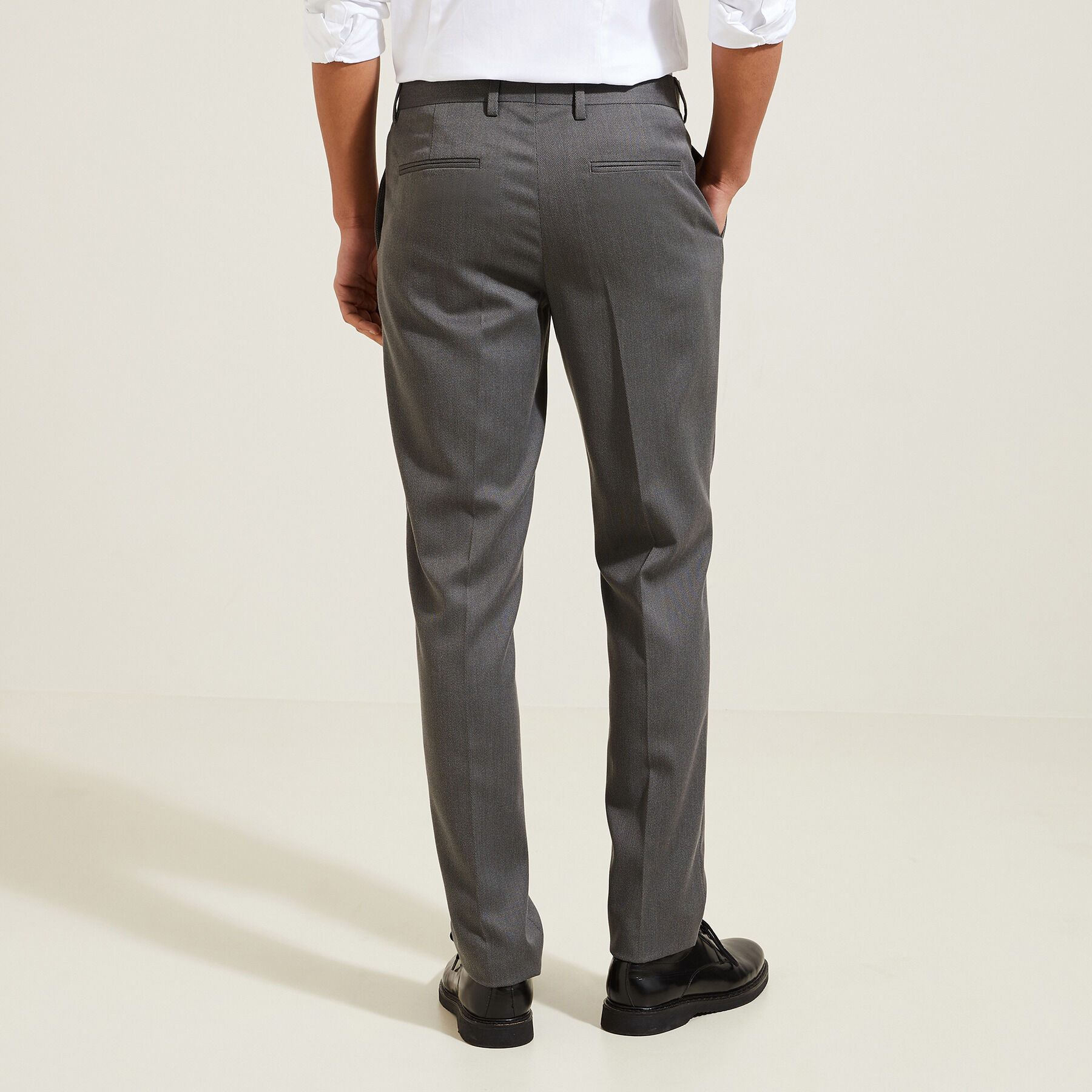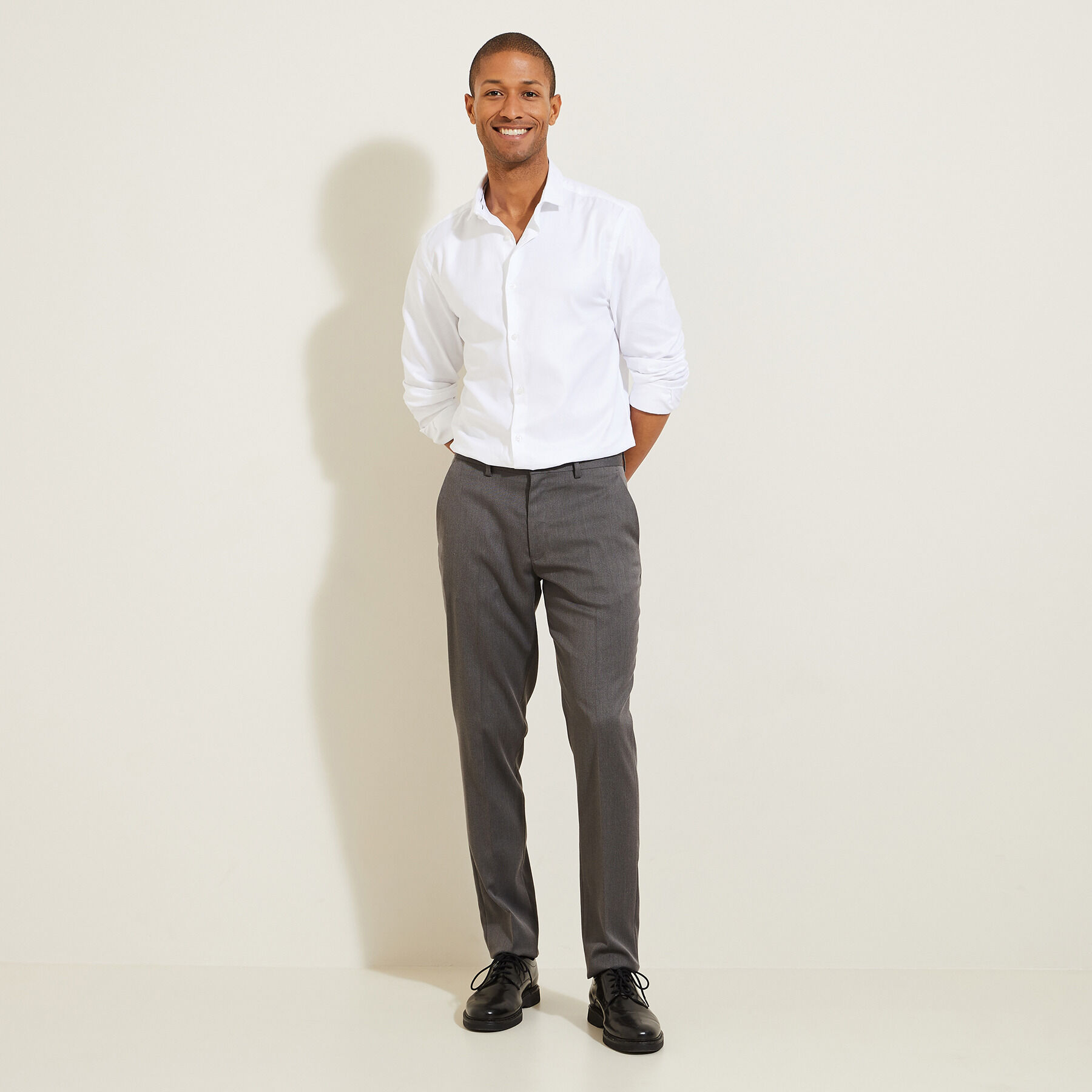 Alliant élégance et confort, ce pantalon de costume est un indispensable du vestiaire masculin. Avec une chemise et la veste associée, vous serez chic en toutes circonstances !Coupe slim : étroite sur la cuisse et sur toute la jambeFermeture zippée et boutonnée2 poches italiennes avant + 2 poches passepoilées cousues arrièrePassants pour ceintureLongueur entrejambe : 84 cmLa matière principale du coloris noir dispose de 78% de polyester recyclé et celle des coloris marine et gris 79%Le mannequin mesure 1m86 et porte une taille 40.