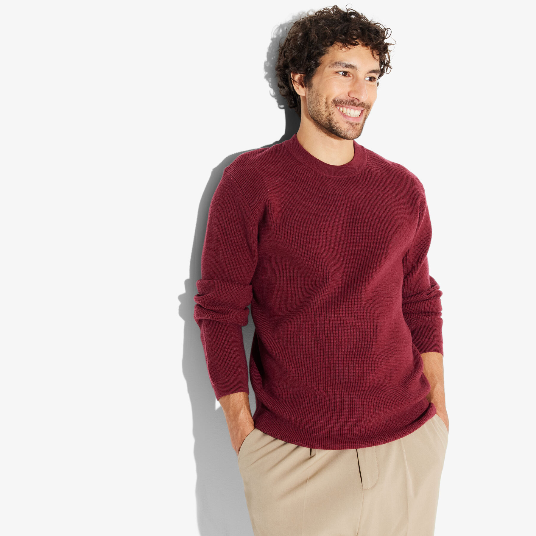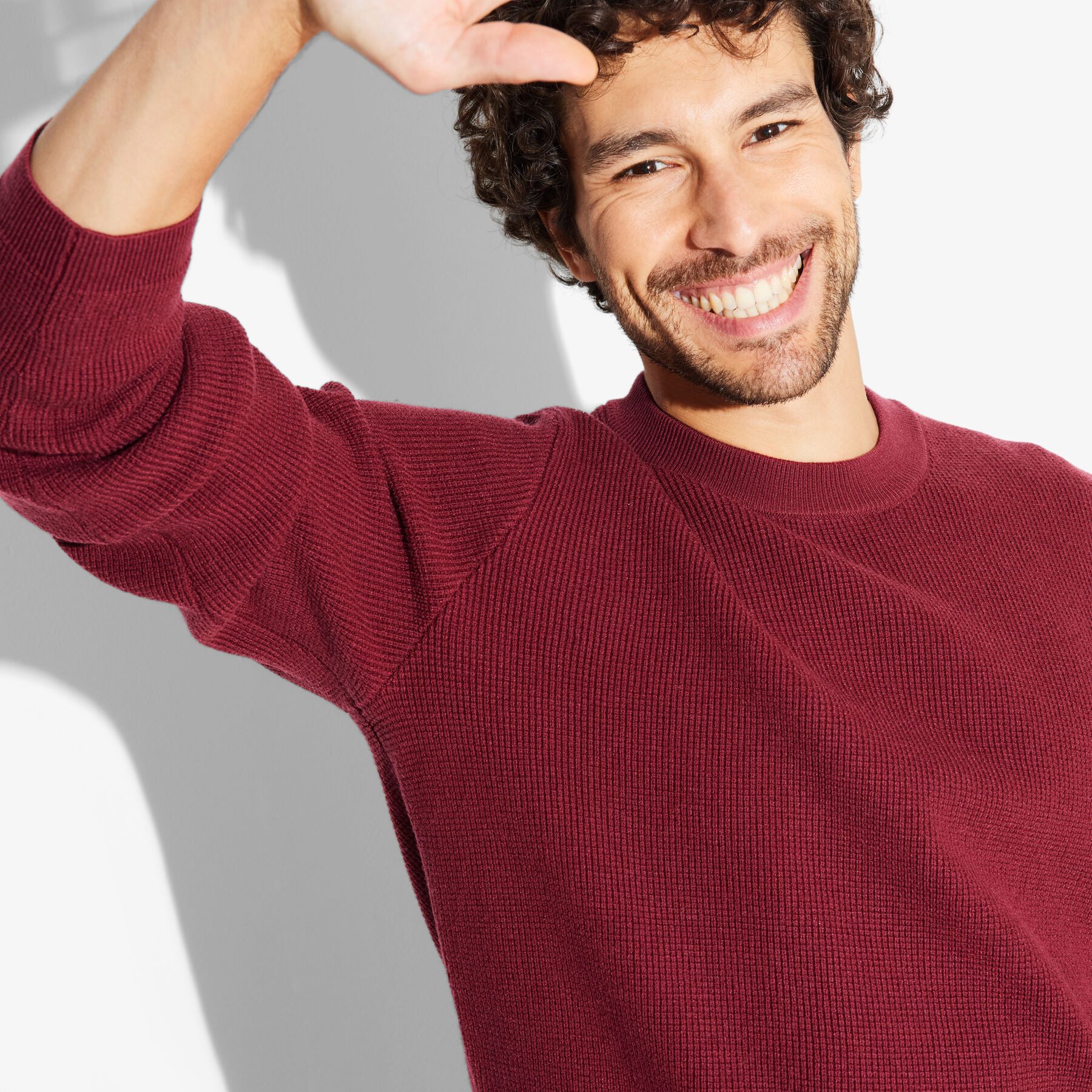 Ce pull col rond jeux de points apportera une touche d’originalité à vos tenues grâce à son motif unique.Coupe regular : coupe intemporelle, ni trop ajustée, ni trop largeCol rond classiqueMicro gaufréBase et poignets en bord-côtesCe pull à col rond sera idéal pour un look casual-chic. Vous pourrez l’associer à un pantalon chino et des boots pour un look décontracté mais élégant. Pour un look plus habillé, vous pourrez le porter sous un blazer ou un blouson type bomber.Le mannequin mesure 1m86 et porte du L.