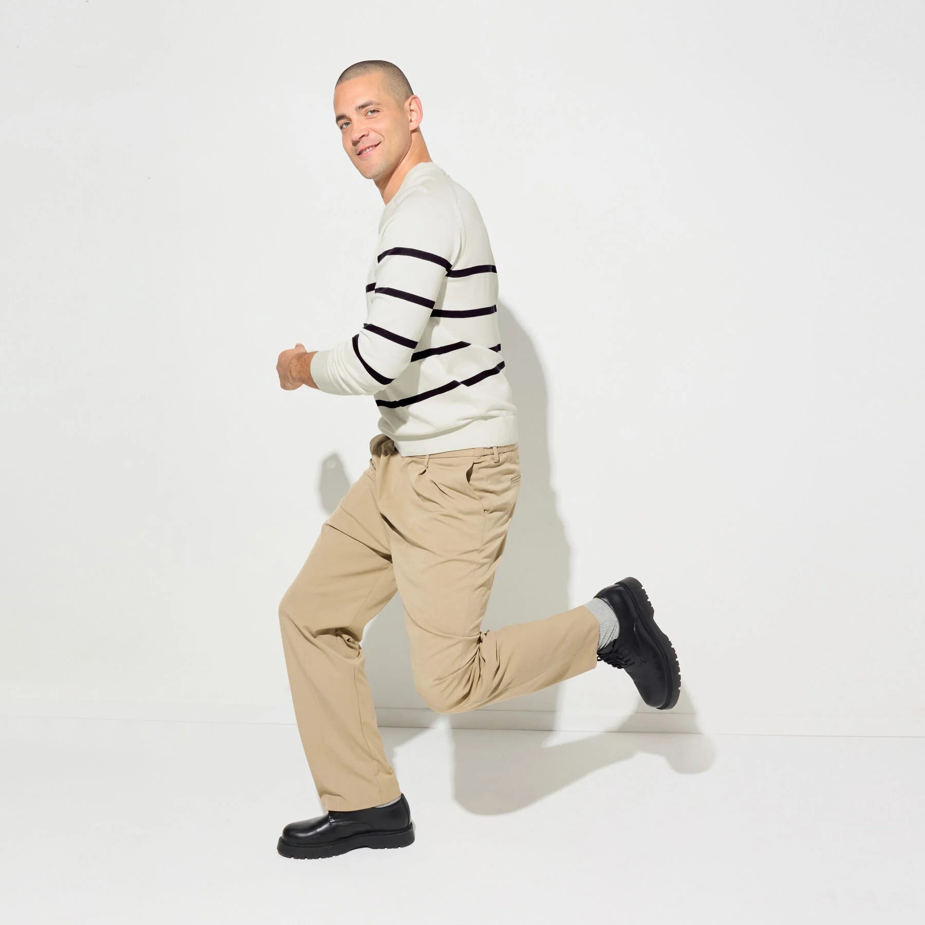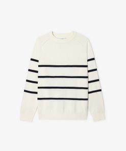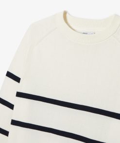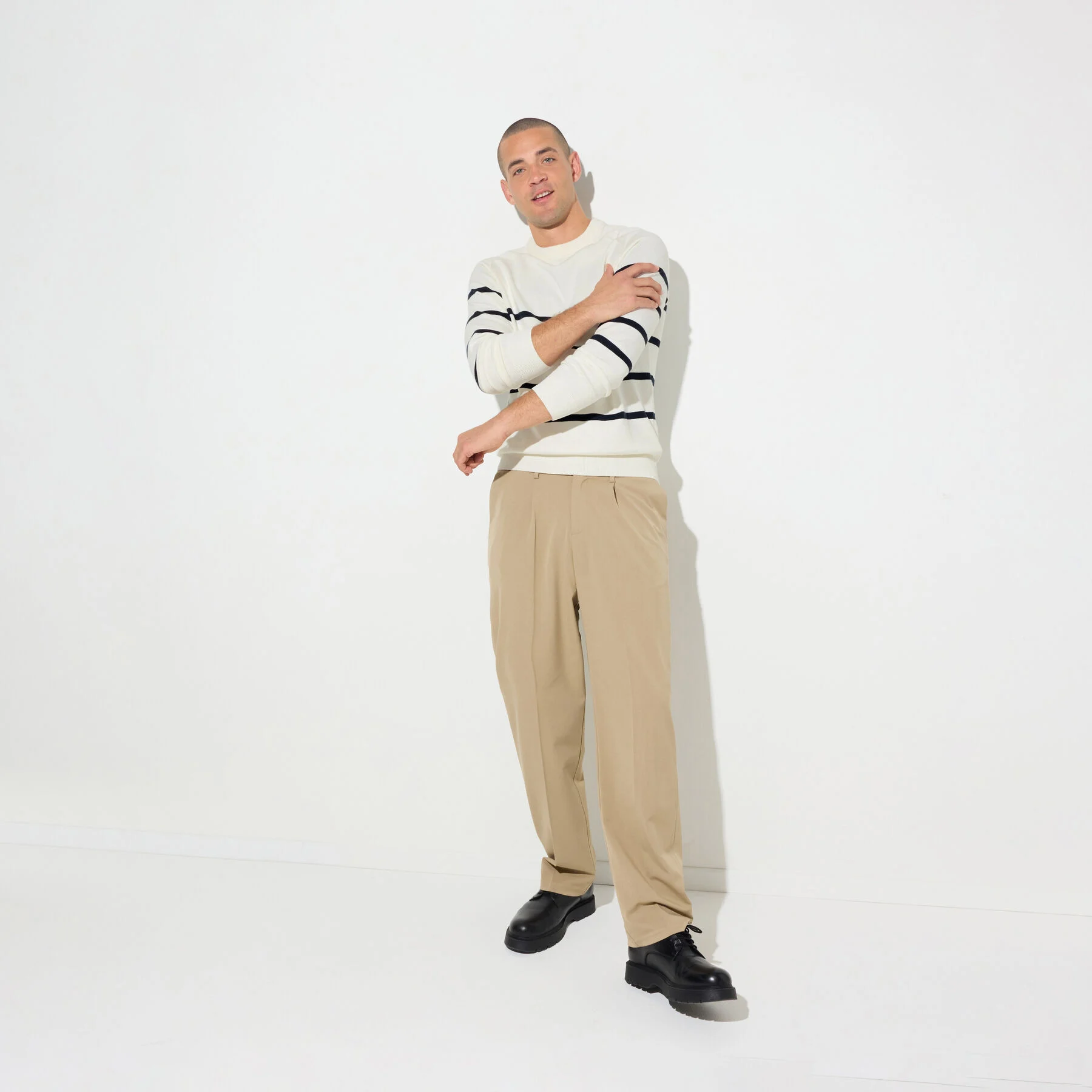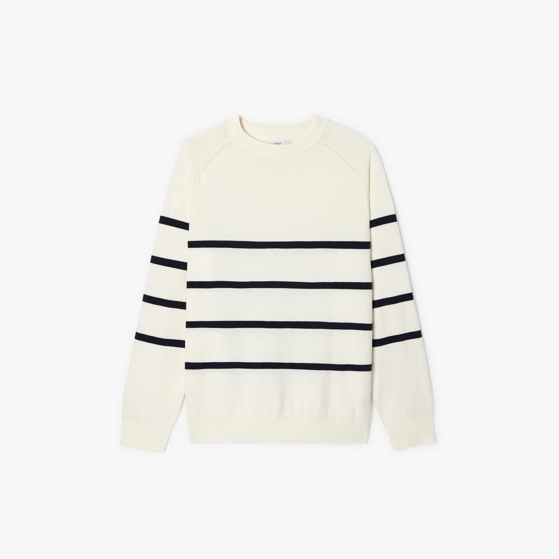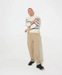 Ce pull à rayures contrastées peut se porter avec un jean ou un chino, c’est comme vous voulez ! Sa matière est chaude et confortable.Ni trop ajusté ni trop large avec un tombé droitCol rondBas de manches et bas de corps en bord-côtesGeoffrey mesure 1m85 et porte une taille L.
