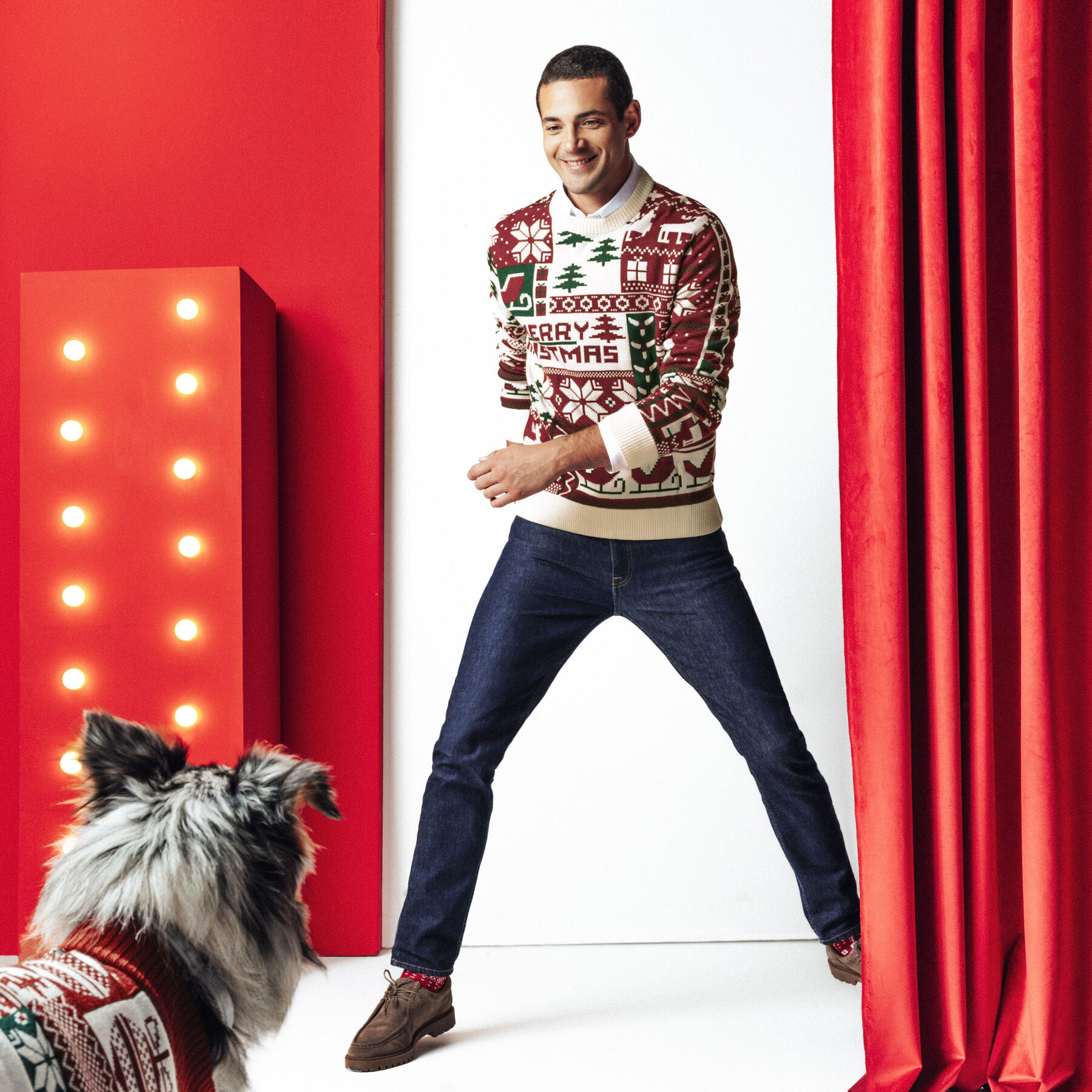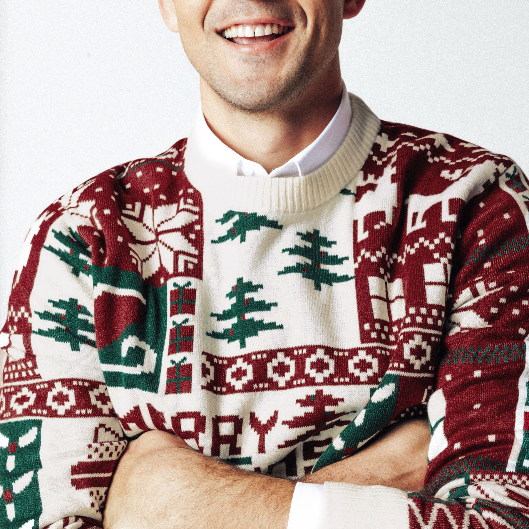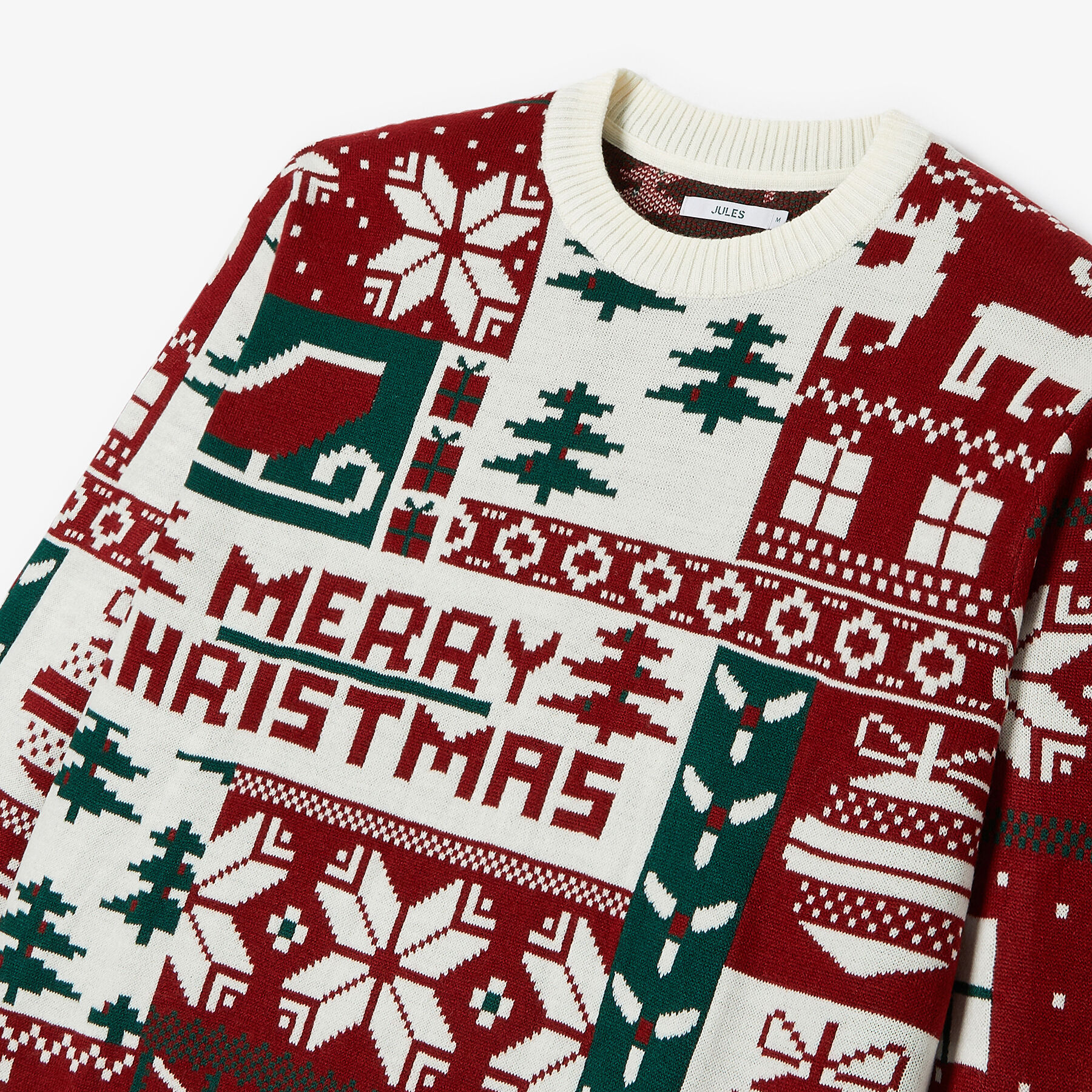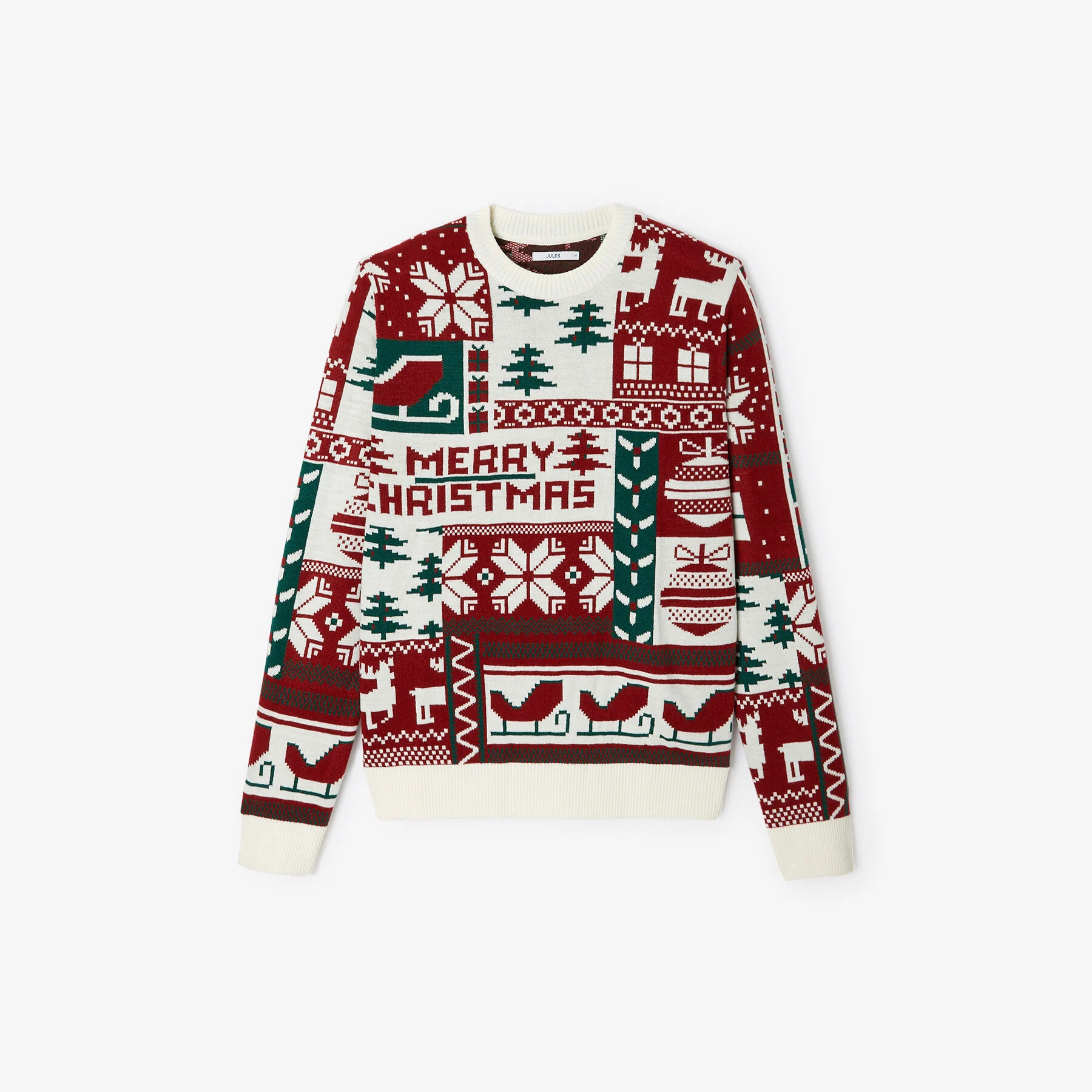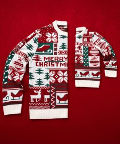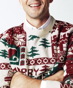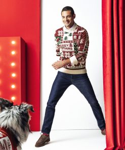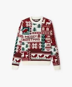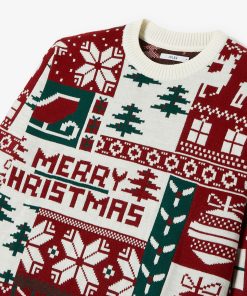 Ce pull de Noël à col rond, affichant fièrement l’inscription « Merry Christmas