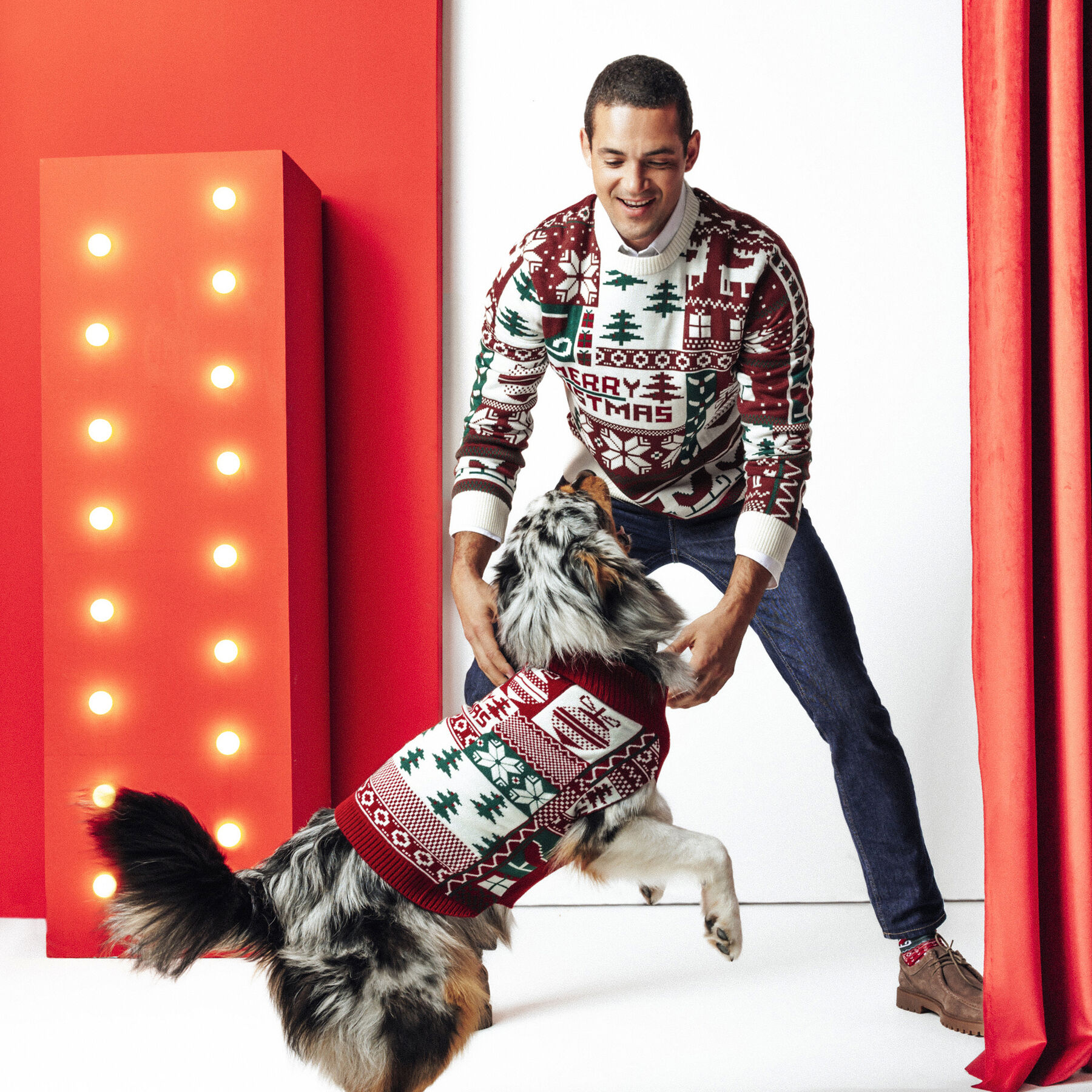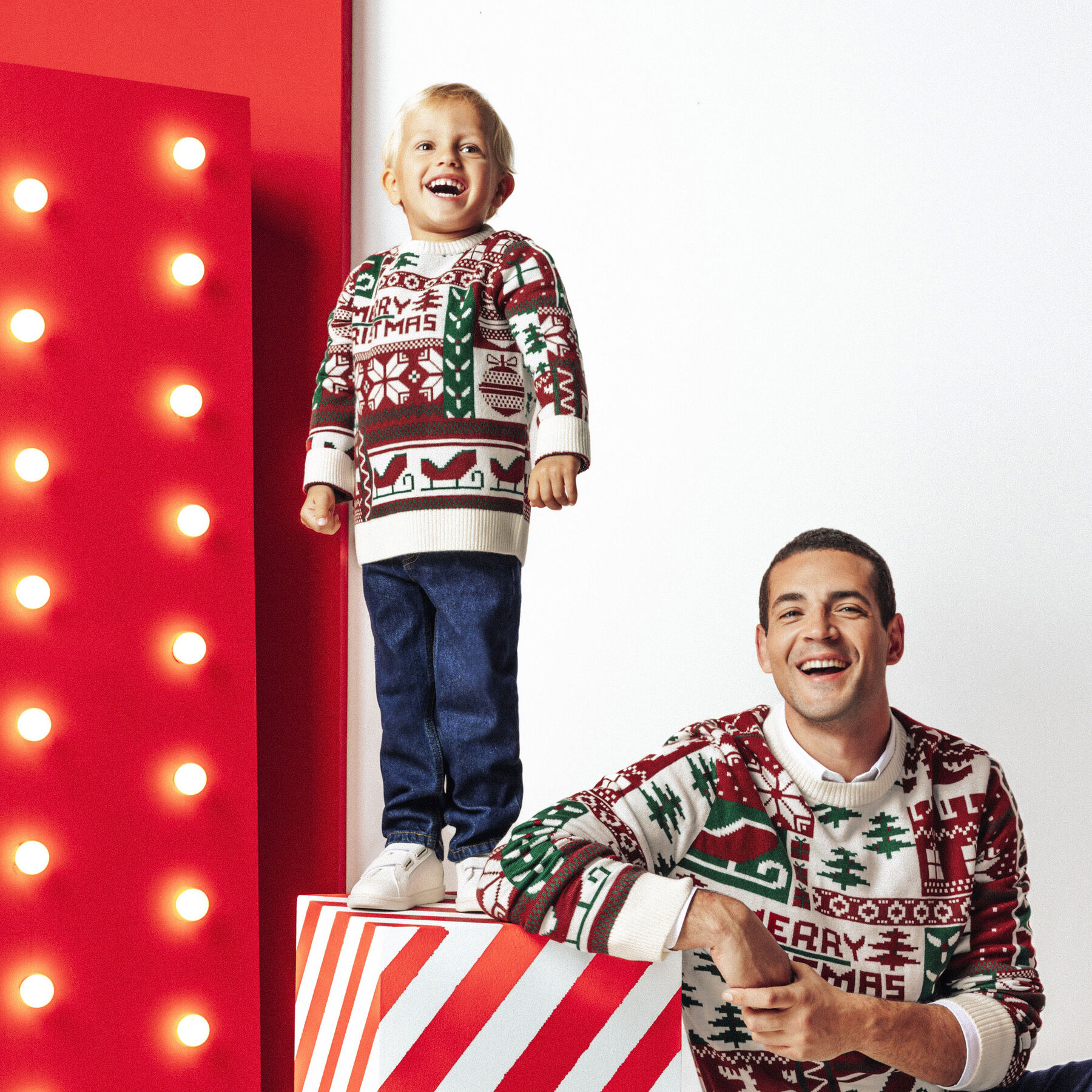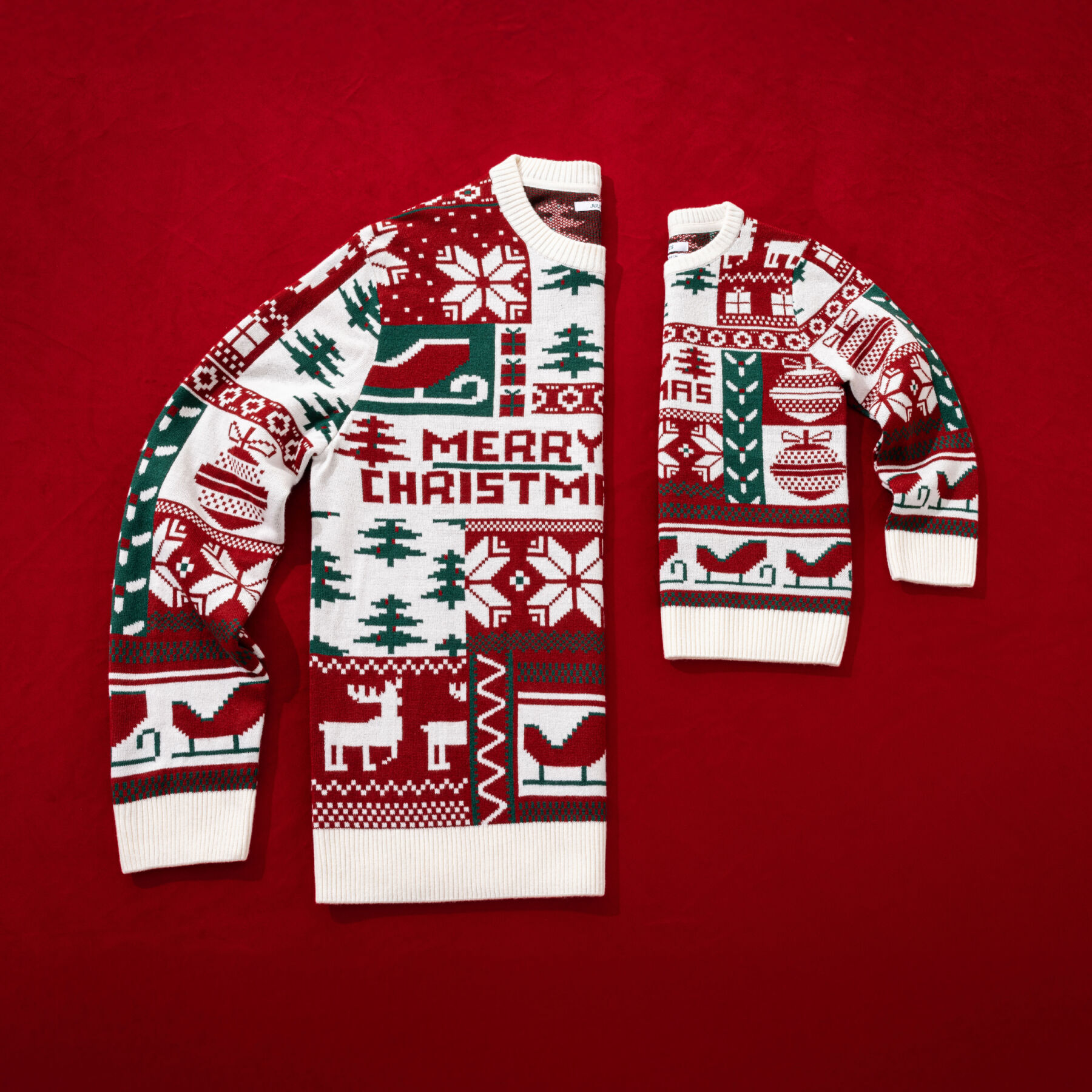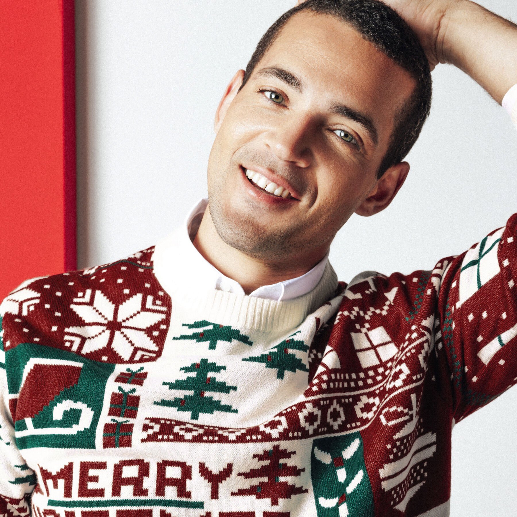Ce pull de Noël à col rond, affichant fièrement l’inscription « Merry Christmas