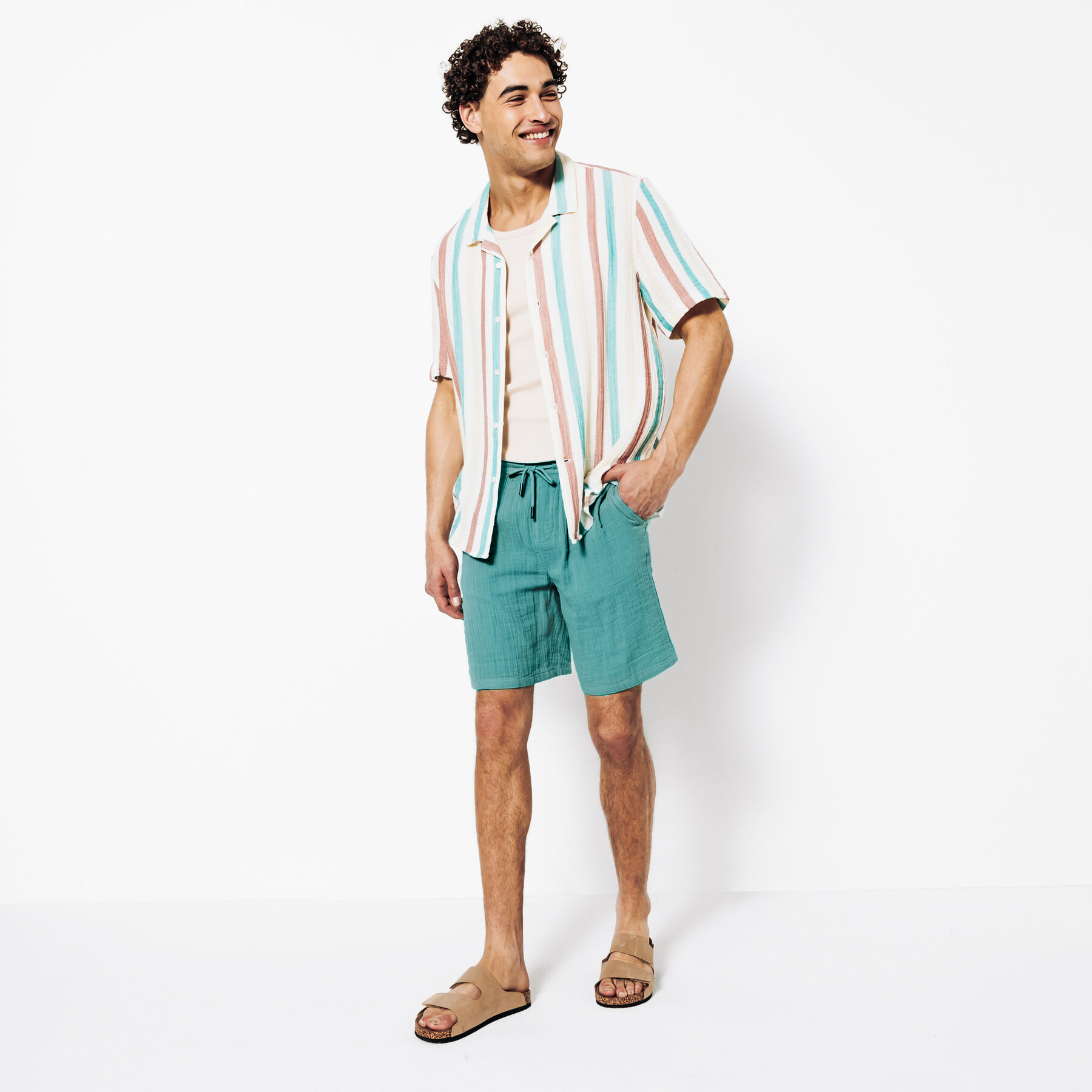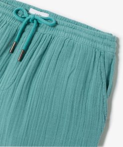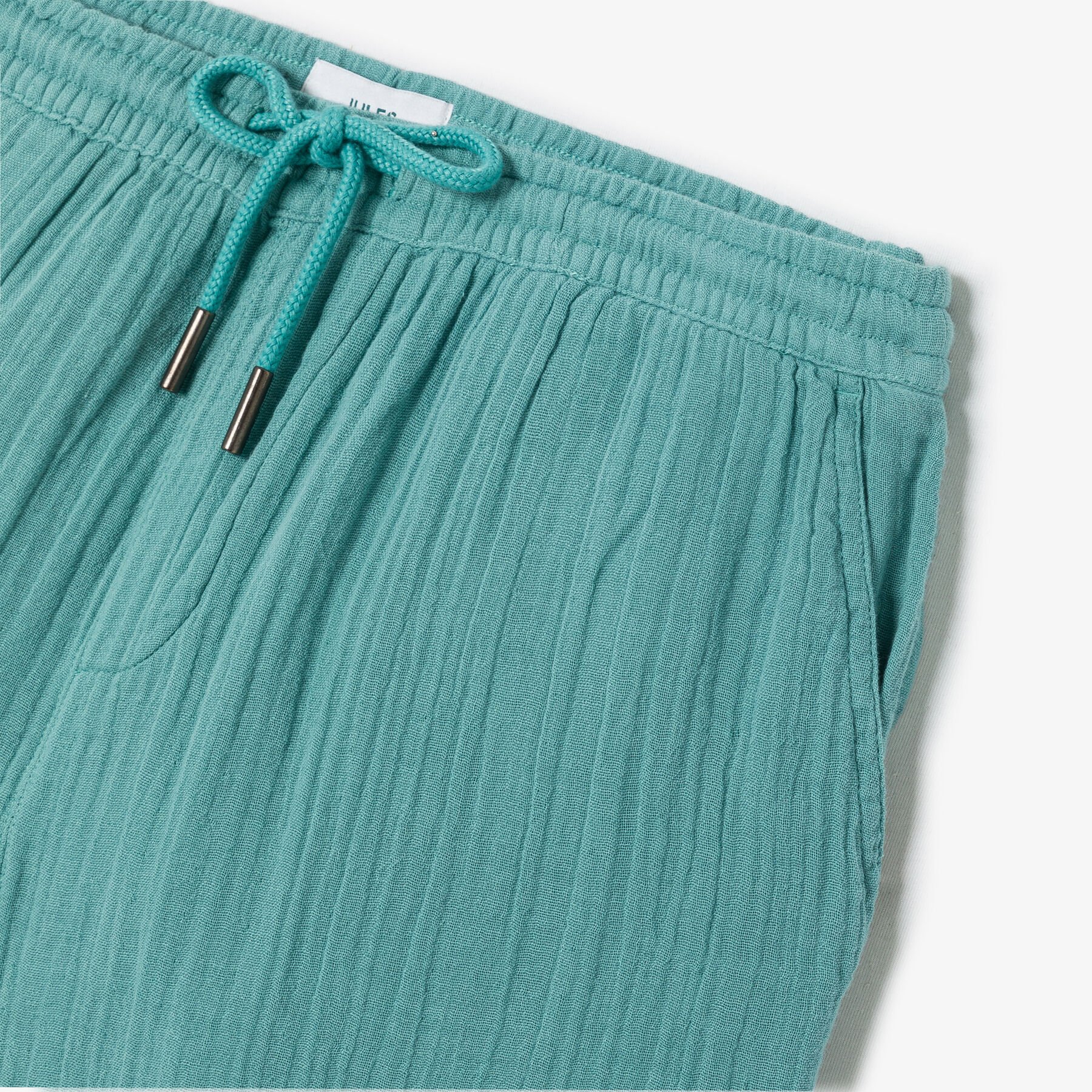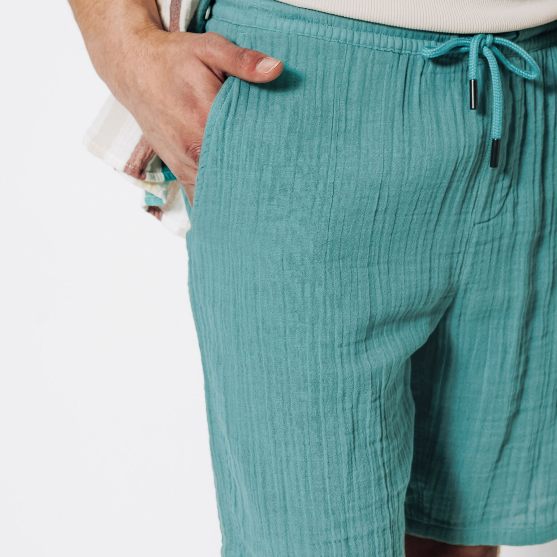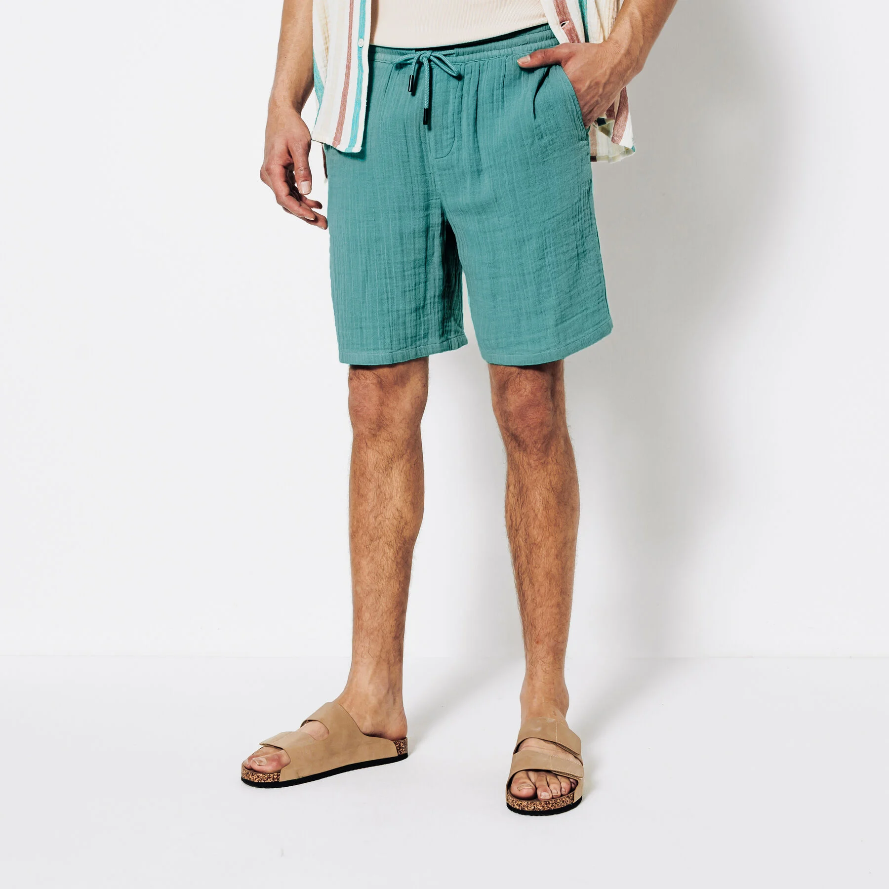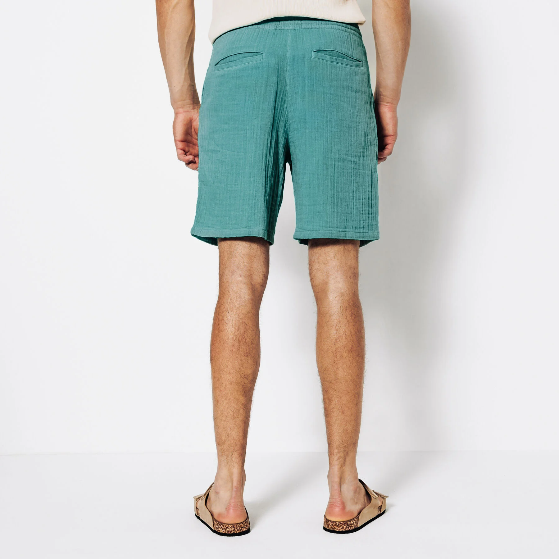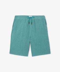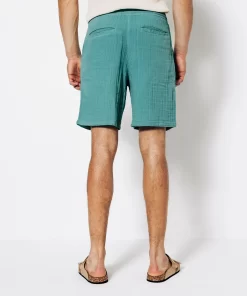 Ce bermuda en gaze de coton, très léger, respirant et confortable, est une pièce maîtresse du vestiaire estival.Taille élastiquée avec cordon de serrage2 poches italiennes avant + 2 fausses poches passepoilées arrièreMatière légère et fluide, idéale pour les journées chaudesLe mannequin mesure 1m86 et porte une taille M.