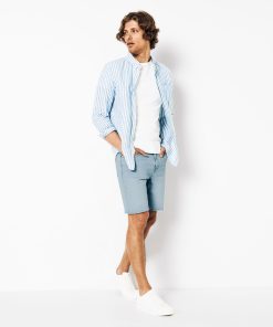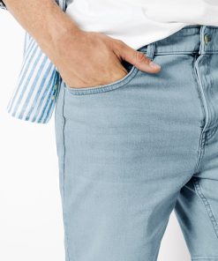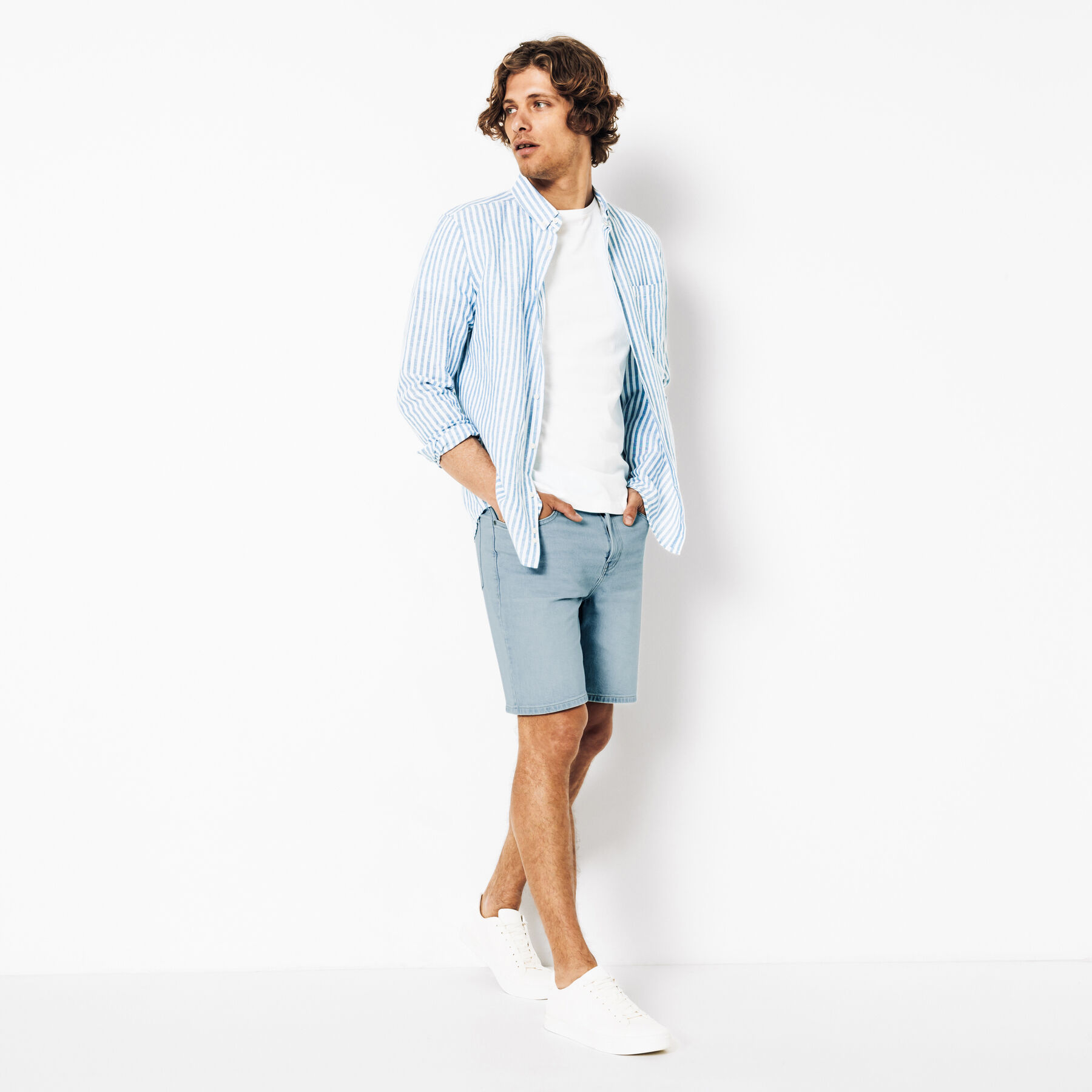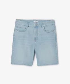 Ce bermuda en jean est un indispensable de la saison. Polyvalent, il vous accompagnera tout l’été. 2 poches à l’avant avec une poche ticket2 poches plaquées à l’arrièrePassants pour ceintureLongueur entrejambe : 21 cmFermeture zippée20% de coton recycléCe short en jean se porte facilement avec un t-shirt basique blanc et une paire de sneakers pour un look décontracté. Pour un look plus habillé, on peut l’associer à une chemise et une paire de derbies.Le mannequin mesure 1m86 et porte du 40.
