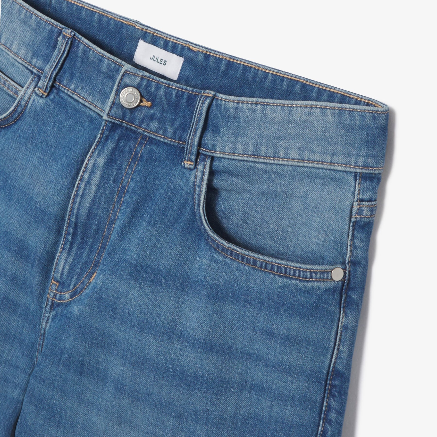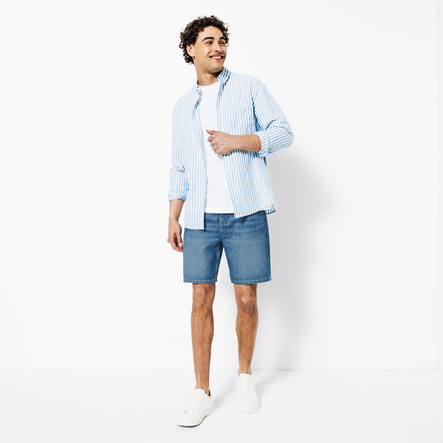 Envie d’un look décontracté et stylé ? Ce bermuda en jean est fait pour vous. Avec sa fermeture boutonnée et zippée, ses passants pour ceinture et ses multiples poches, il a tout pour plaire.2 poches à l’avant dont une poche ticket2 poches plaquées à l’arrièreFermeture zippéePassants pour ceinture20% de coton recycléLongueur entrejambe : 21 cmCe short en jean s’associera parfaitement avec un t-shirt basique blanc et une paire de baskets pour un look décontracté. Pour un look plus habillé, vous pouvez le porter avec une chemise et des mocassins.Le mannequin mesure 1m86 et porte du 40.