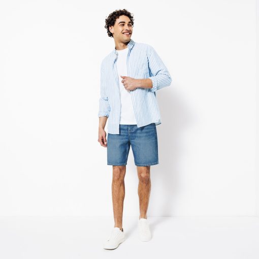 Envie d’un look décontracté et stylé ? Ce bermuda en jean est fait pour vous. Avec sa fermeture boutonnée et zippée, ses passants pour ceinture et ses multiples poches, il a tout pour plaire.2 poches à l’avant dont une poche ticket2 poches plaquées à l’arrièreFermeture zippéePassants pour ceinture20% de coton recycléLongueur entrejambe : 21 cmCe short en jean s’associera parfaitement avec un t-shirt basique blanc et une paire de baskets pour un look décontracté. Pour un look plus habillé, vous pouvez le porter avec une chemise et des mocassins.Le mannequin mesure 1m86 et porte du 40.