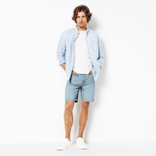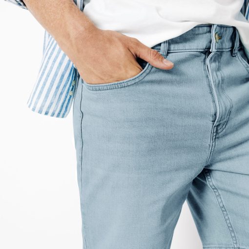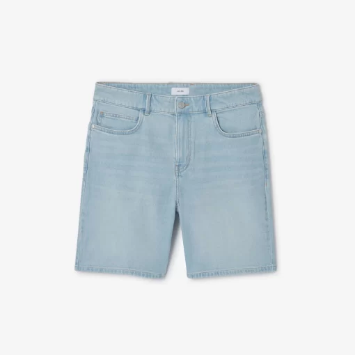 Ce bermuda en jean est un indispensable de la saison. Polyvalent, il vous accompagnera tout l’été. 2 poches à l’avant avec une poche ticket2 poches plaquées à l’arrièrePassants pour ceintureLongueur entrejambe : 21 cmFermeture zippée20% de coton recycléCe short en jean se porte facilement avec un t-shirt basique blanc et une paire de sneakers pour un look décontracté. Pour un look plus habillé, on peut l’associer à une chemise et une paire de derbies.Le mannequin mesure 1m86 et porte du 40.