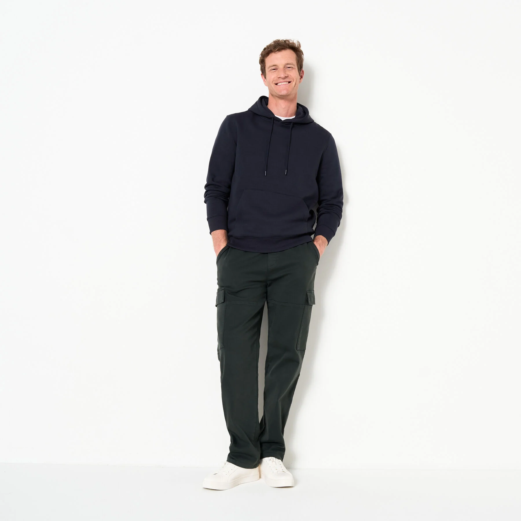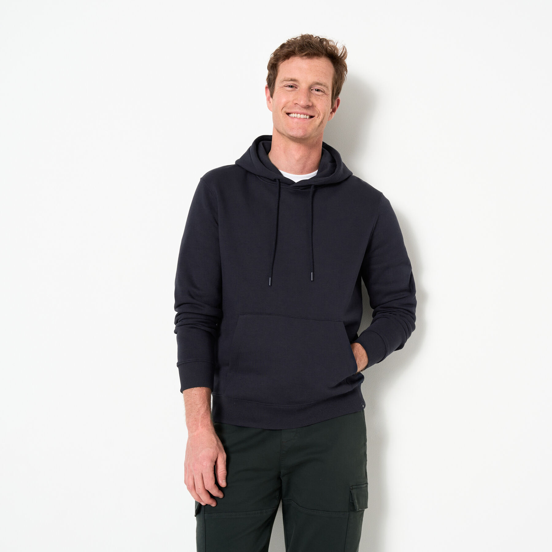 Ce hoodie est un essentiel du vestiaire masculin ! Accordé avec un jean ou un chino, ce hoodie en molleton vous donnera une allure casual et décontractée.Coupe regular, ni trop ajustée ni trop large avec un tombé droitCapuche avec cordons de serragePoche kangourou devantFinitions côtelées en bas de manche et bas de corpsMolleton gratté à l’intérieur, apporte de la douceur30% de polyester recycléLe mannequin mesure 1m86 et porte une taille L.