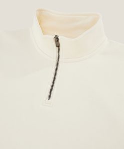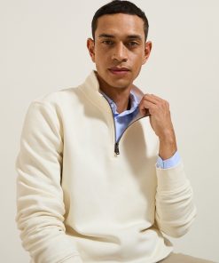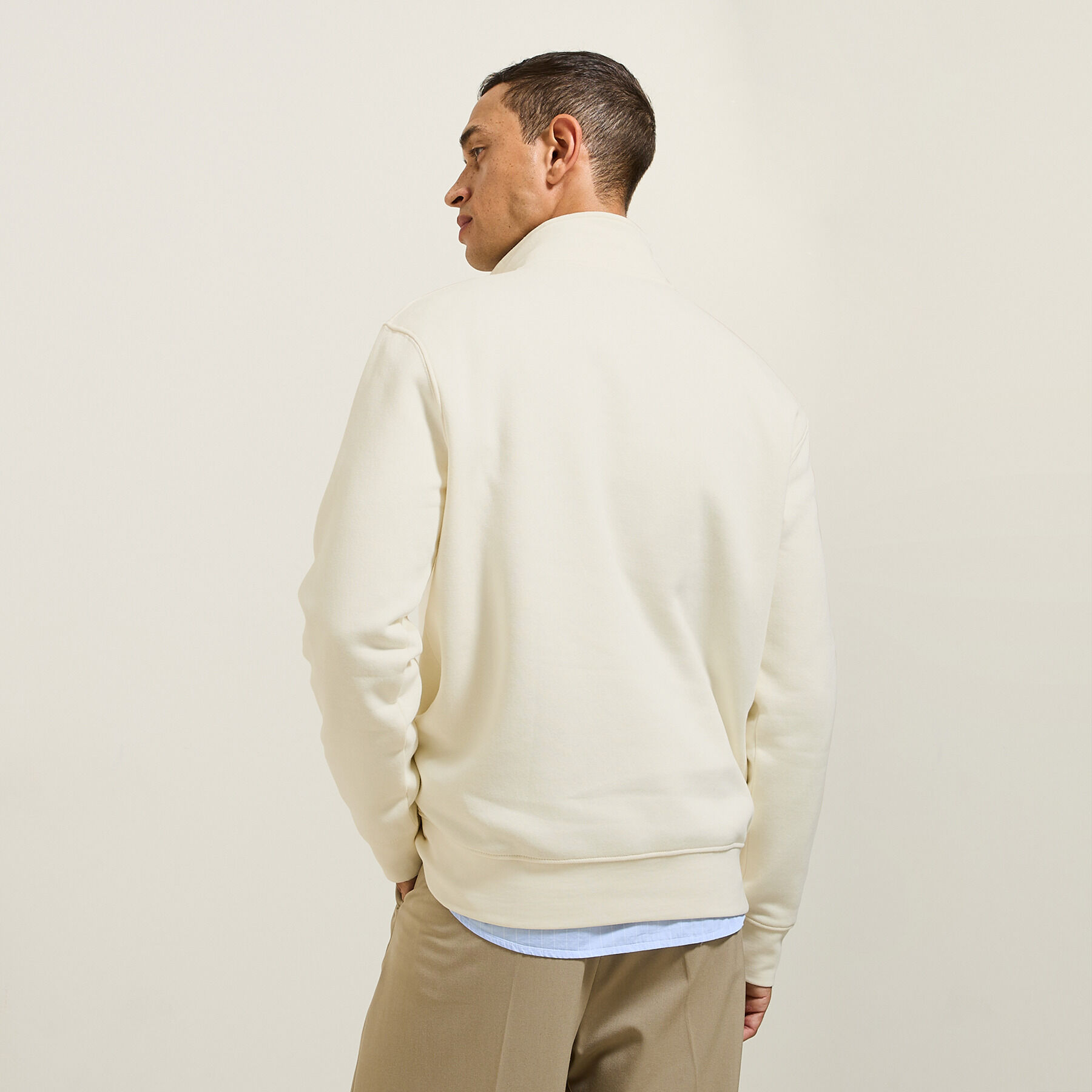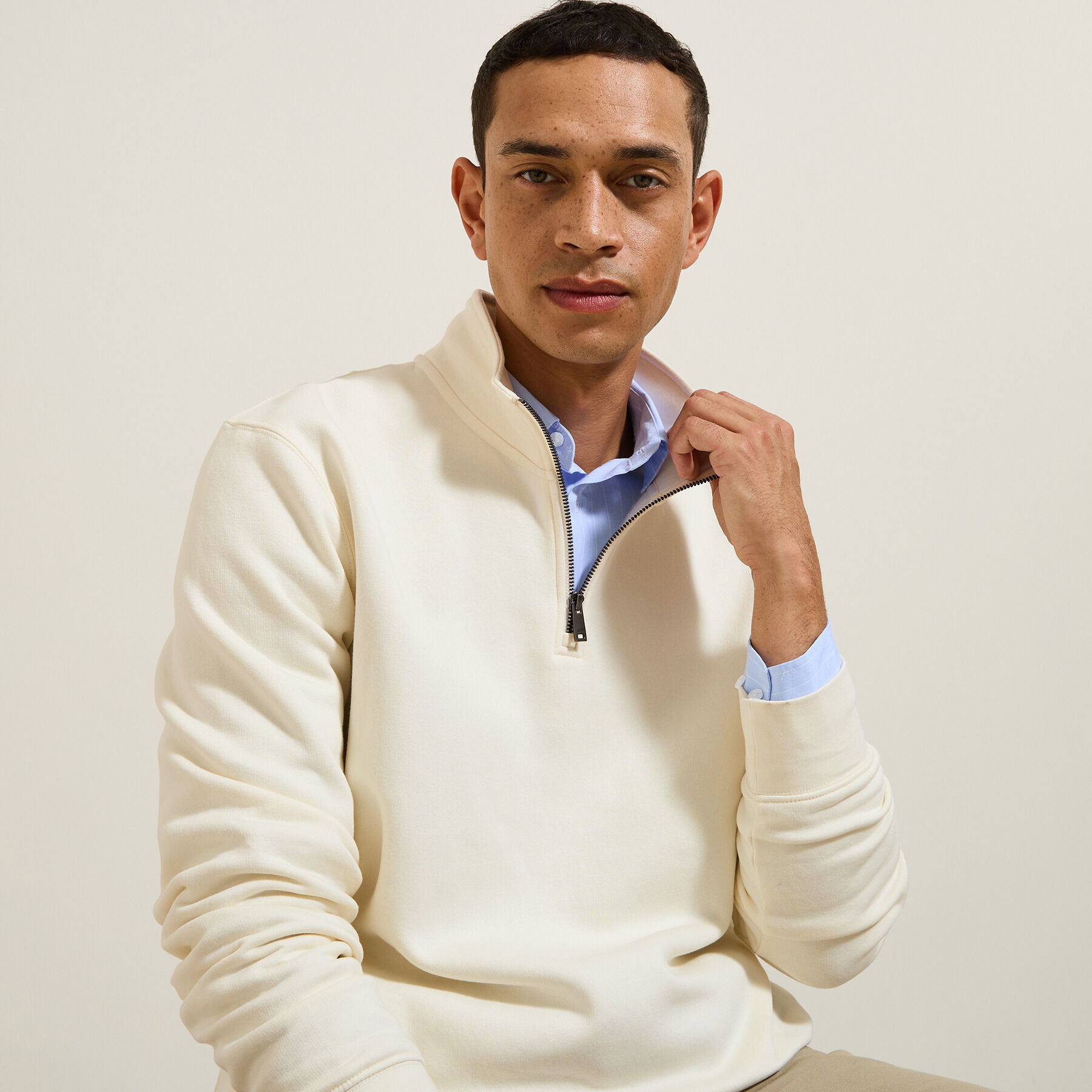 Ce sweat à manches longues en molleton répond à toutes vos envies. Il peut se porter en mode chic fermé ou en mode cool, ouvert !Coupe regular : coupe intemporelle, ni trop ajustée, ni trop largeCol montant zippéBas de corps et bas de manches en bord-côtesGrammage : 320 g/m²Contient 53% de coton issu de l’agriculture biologique, 20% de coton recyclé et 27% de polyester recycléLe mannequin mesure 1m86 et porte une taille L.