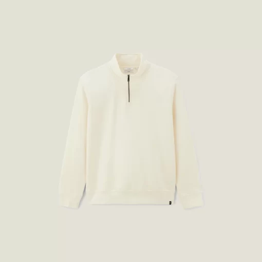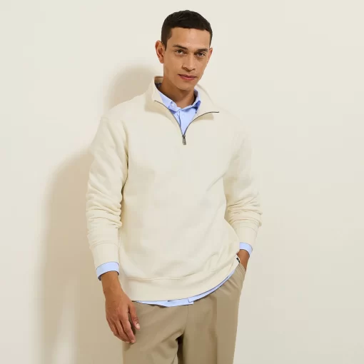 Ce sweat à manches longues en molleton répond à toutes vos envies. Il peut se porter en mode chic fermé ou en mode cool, ouvert !Coupe regular : coupe intemporelle, ni trop ajustée, ni trop largeCol montant zippéBas de corps et bas de manches en bord-côtesGrammage : 320 g/m²Contient 53% de coton issu de l’agriculture biologique, 20% de coton recyclé et 27% de polyester recycléLe mannequin mesure 1m86 et porte une taille L.