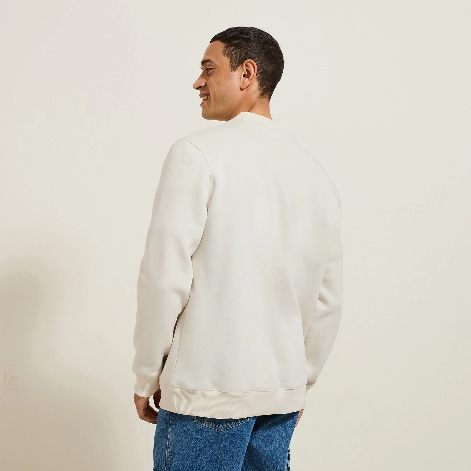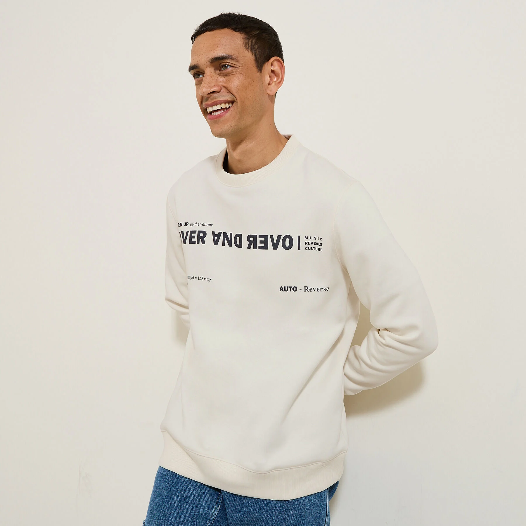 Parfait pour toutes les occasions, ce sweat polyvalent se marie facilement avec votre dressing ! Optez pour le style et le confort en toutes circonstances.Coupe regular, ni trop ajustée ni trop large avec un tombé droitCol rondImprimé sur le devant Bord-côtes bas de corps, manches et colMolleton à l’intérieur, apporte de la douceur30% de polyester recycléLe mannequin mesure 1m86 et porte une taille L.