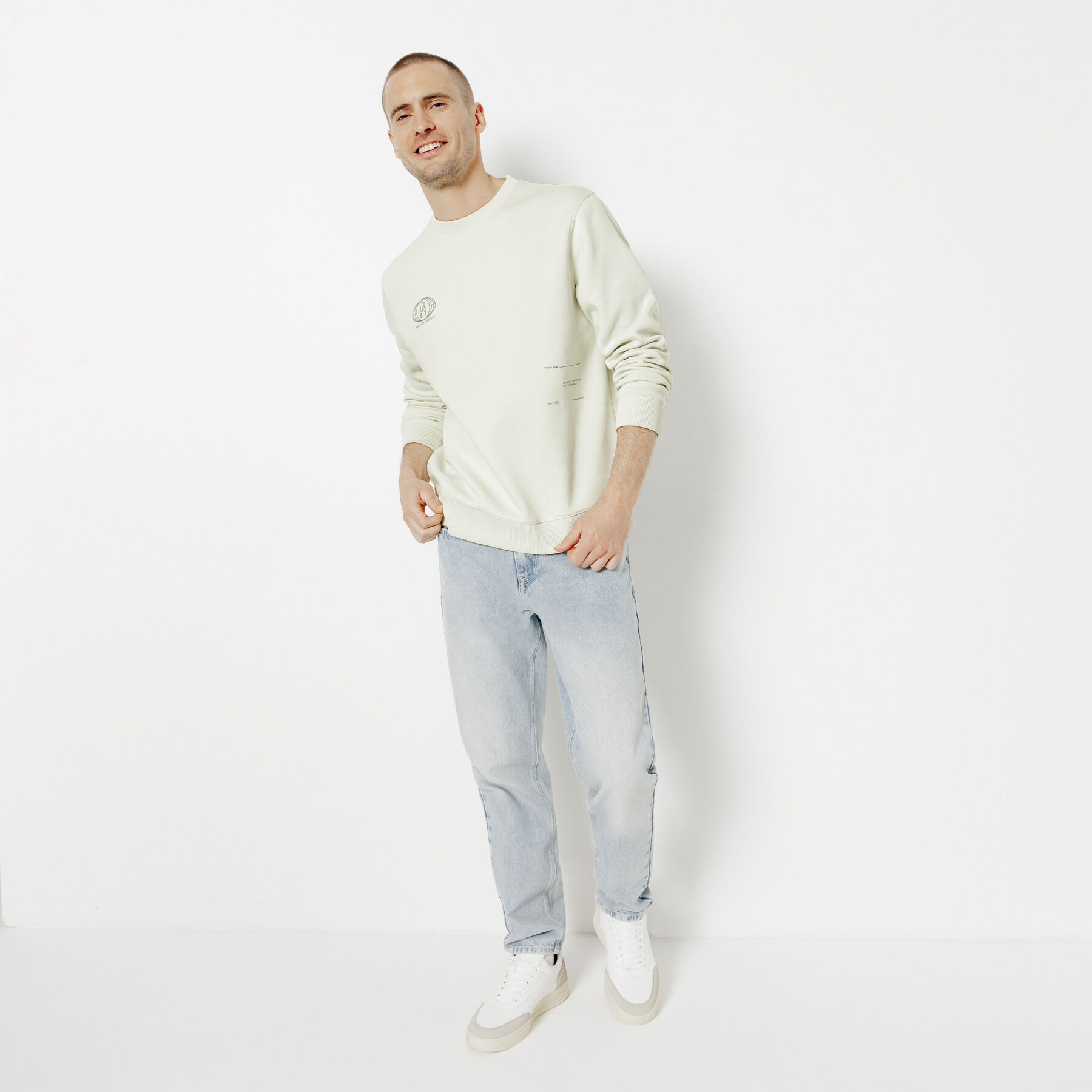 Ce sweat col rond imprimé apporte une touche d’originalité à votre tenue décontractée. Son imprimé unique et son intérieur molletonné en font un choix idéal pour un look stylé et confortable.Coupe regular : coupe intemporelle, ni trop ajustée, ni trop largeCol rond classiqueFinitions côtelées en bas de manche et bas de corpsImprimé différent selon la couleur30% de polyester recycléIntérieur en molleton pour plus de chaleurCe sweatshirt imprimé se marie parfaitement avec un jean brut et des baskets blanches pour un look décontracté et tendance. Pour un style plus habillé, on peut l’associer à un pantalon chino et des derbies.Le mannequin mesure 1m86 et porte du L.