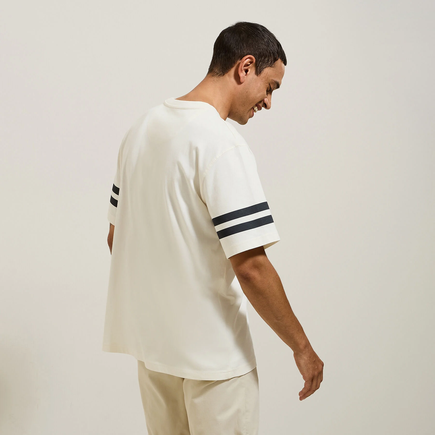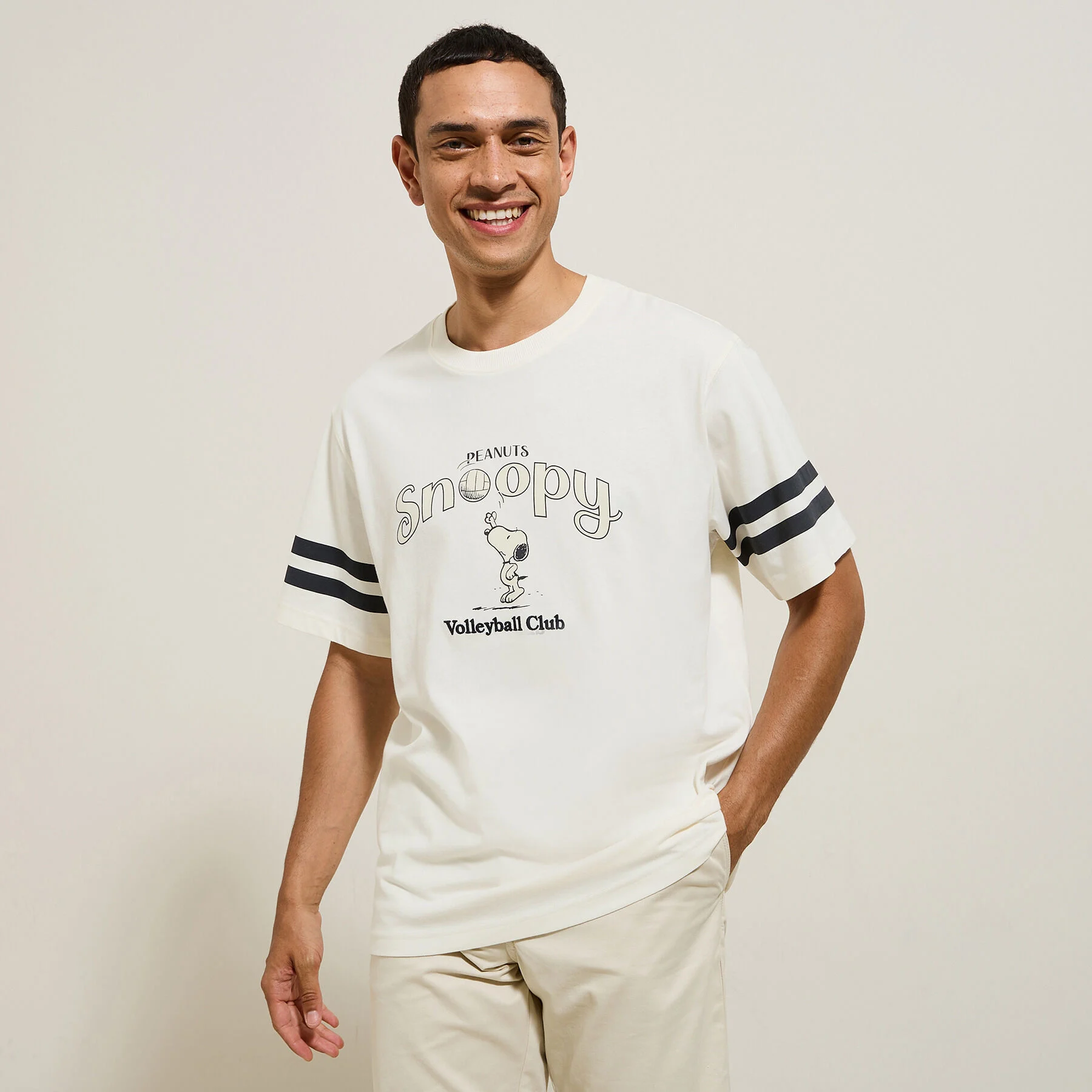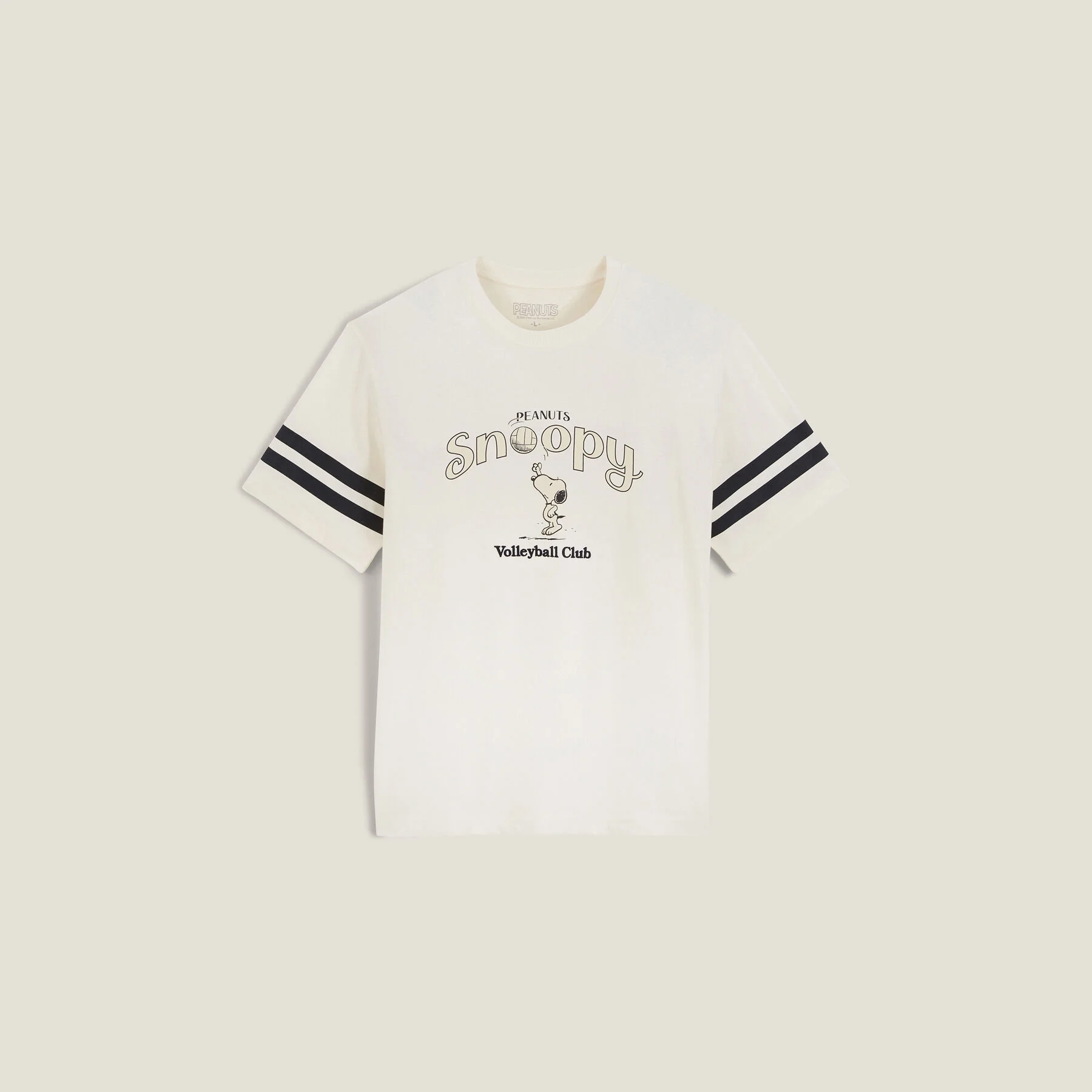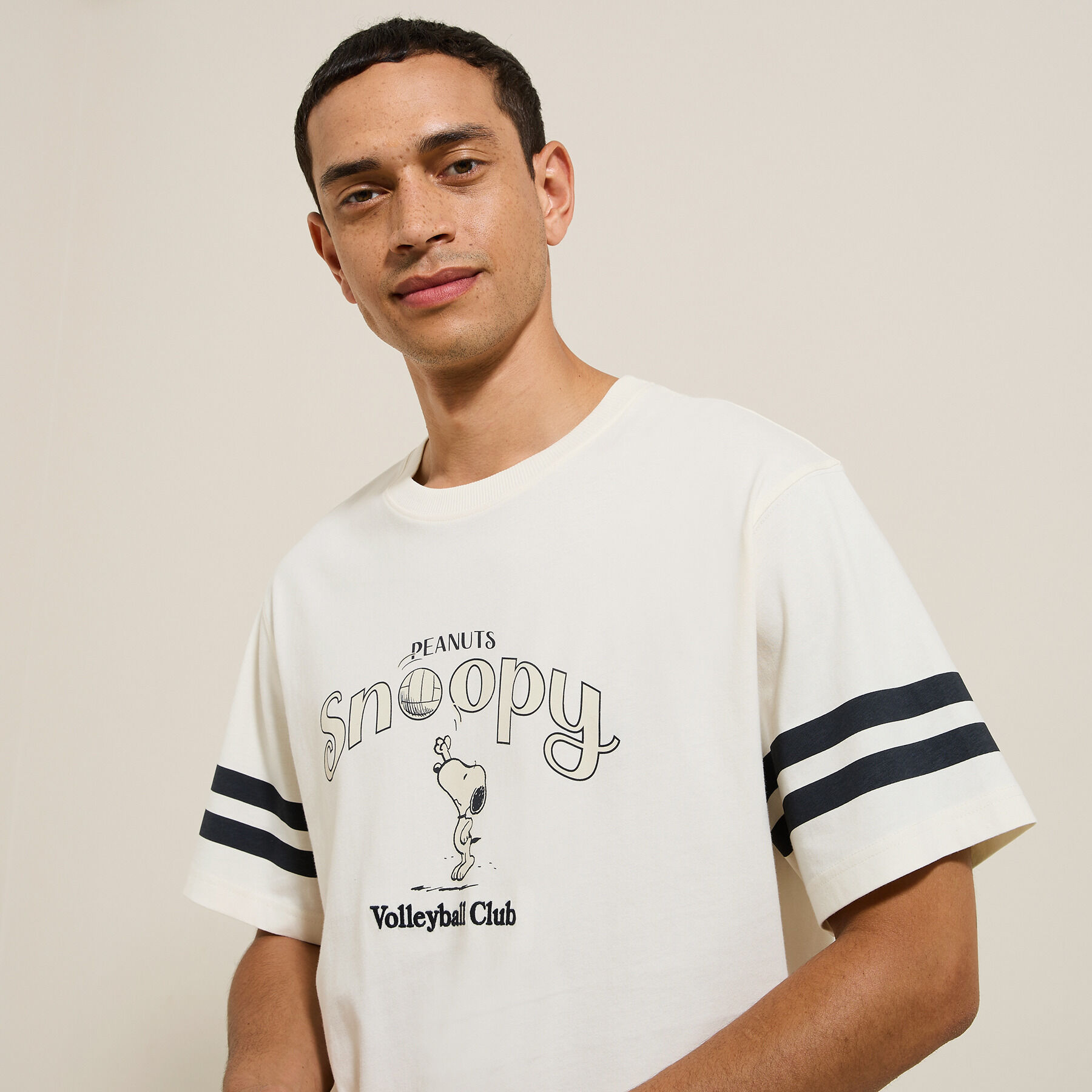 Idéal pour la venue des beaux jours, ce t-shirt imprimé Snoopy Volleyball Club apporte une touche casual à votre tenue. Il s’accorde avec un jean, un chino ou même un bermuda, c’est comme vous voulez !Coupe relax, plus large avec coutures épaules descenduesCol rondManches courtesImprimé Snoopy à la poitrineBandes contrastées en bas de manchesLe mannequin mesure 1m86 et porte une taille L.