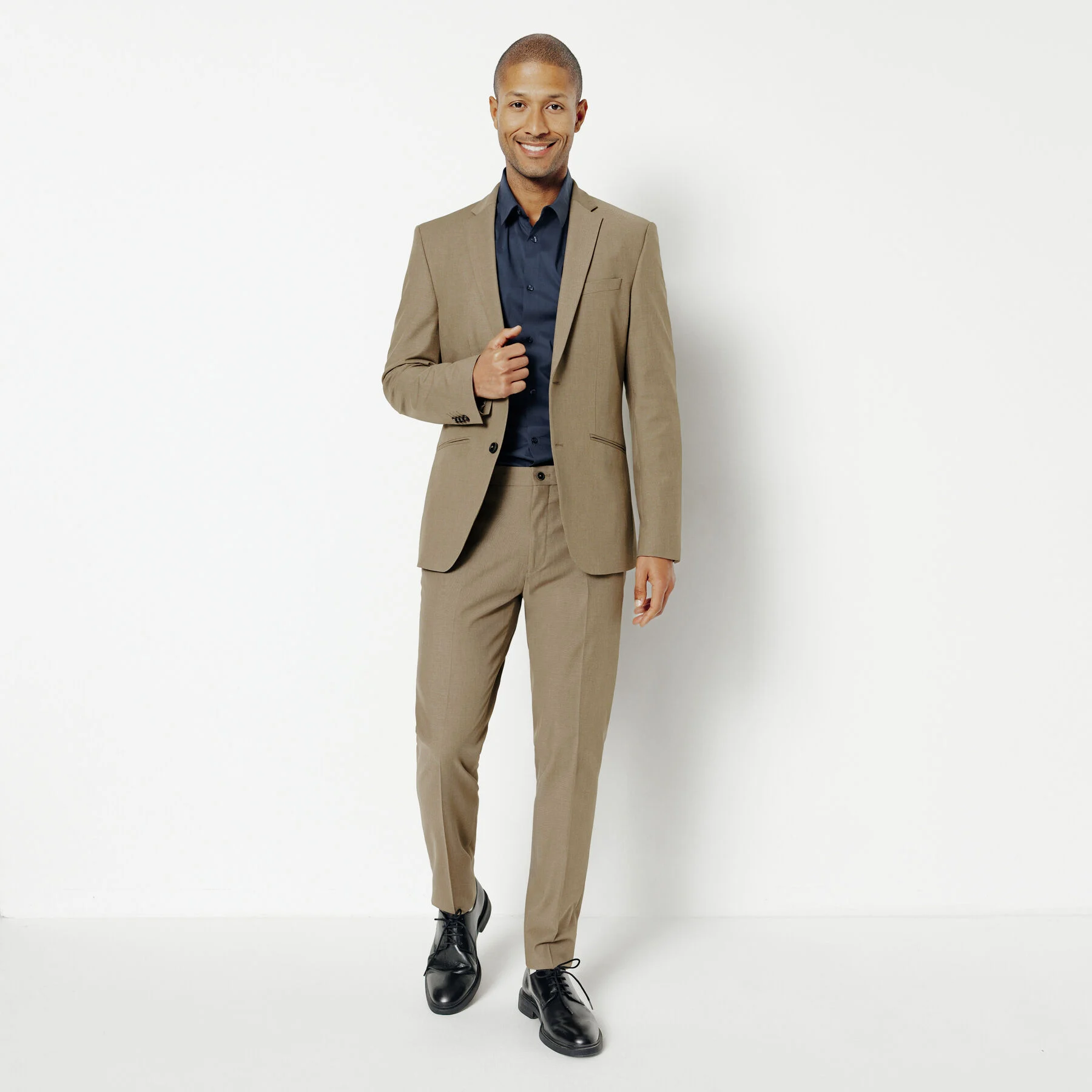 Un costume moderne et élégant ? Optez pour cette veste de costume extra slim bistretch, parfaite pour un look impeccable au quotidien.Coupe extra slim : coupe cintrée, très près du corpsTissu bi-stretch : tissu extensible dans les deux sens offrant un confort exceptionnel et une liberté de mouvement inégaléeFermeture boutonnée2 poches à rabat sur le devant et 1 poche poitrine2 poches intérieures boutonnéesBas de manches boutonnésUne fente d’aisance au dos pour plus de confortÉpaulettes allégées Doublure stretchLes poches sont cousues mais peut etre décousues facilement Matière : 64% polyester recycléPantalon de costume assorti disponible (Référence : 1005541)Cette veste de costume peut être portée avec un t-shirt blanc pour un look casual chic ou avec une chemise et une cravate pour une occasion plus formelle. Le mannequin mesure 1m86 et porte du L.