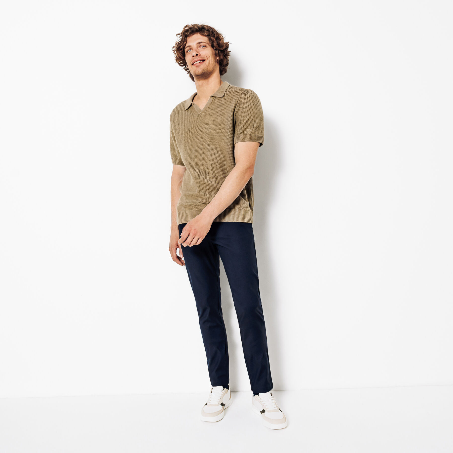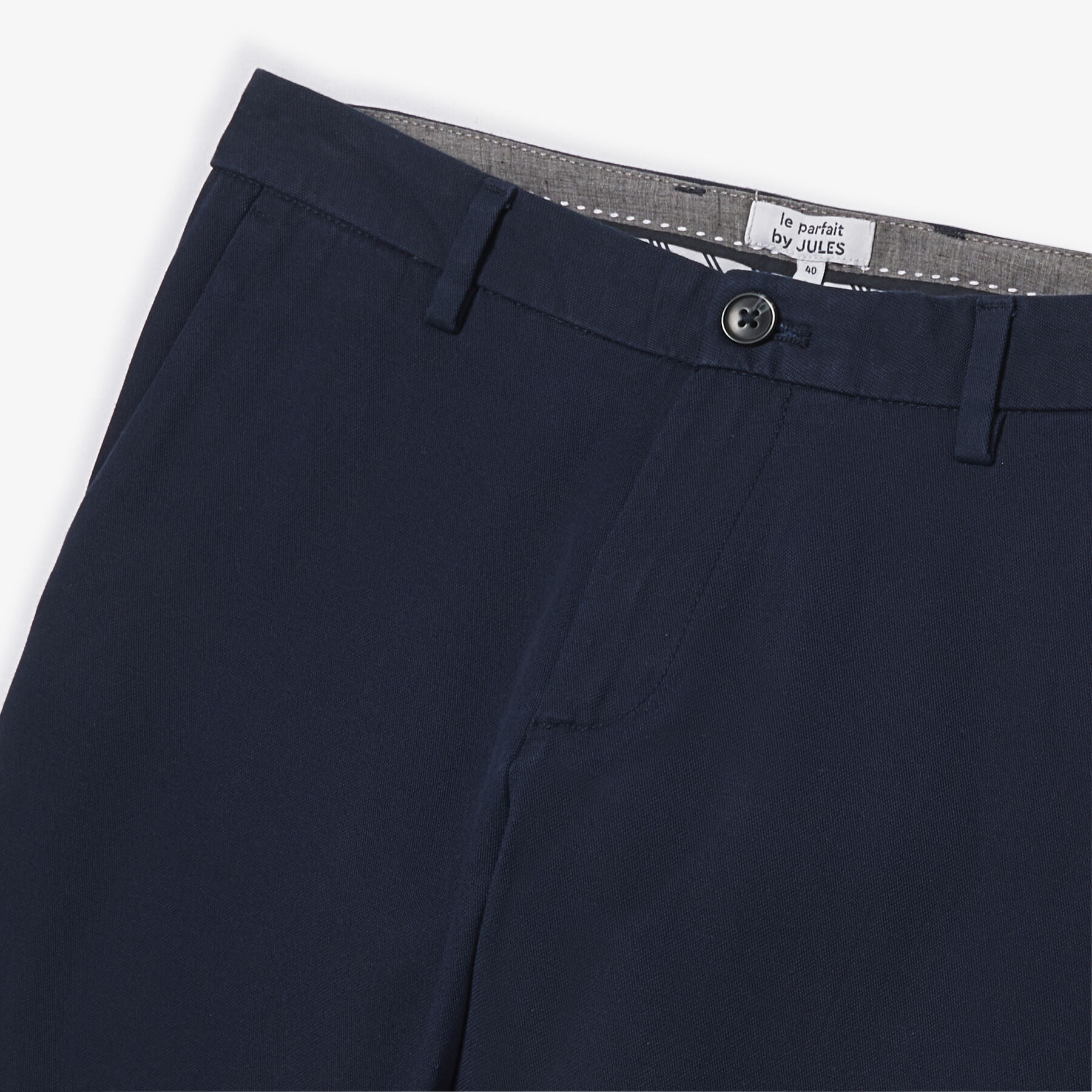 Le pantalon chino uni fait incontestablement partie des must du vestiaire masculin ! A porter à volonté avec un polo ou une chemise, pour un look élégant. Il contient de l’élasthanne pour un confort de mouvement optimal.Coupe slim : étroite sur la cuisse et sur toute la jambeFermeture zippée2 poches italiennes devant + 2 poches passepoilées boutonnées arrièrePassants pour ceintureCoutures renforcées passants et pochesCouleur intense garantie plus longtempsTissage plus serré (290g/m²) pour une excellente tenueLongueur entrejambe : 85 cmGarantie 4 ansCe pantalon est un produit éco conçu Parfait by jules : il contient 78% de coton issu de l’agriculture biologique et 20% coton recyclé.Le mannequin mesure 1m86 et porte une taille 40.