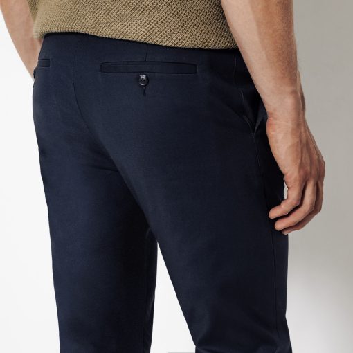 Le pantalon chino uni fait incontestablement partie des must du vestiaire masculin ! A porter à volonté avec un polo ou une chemise, pour un look élégant. Il contient de l’élasthanne pour un confort de mouvement optimal.Coupe slim : étroite sur la cuisse et sur toute la jambeFermeture zippée2 poches italiennes devant + 2 poches passepoilées boutonnées arrièrePassants pour ceintureCoutures renforcées passants et pochesCouleur intense garantie plus longtempsTissage plus serré (290g/m²) pour une excellente tenueLongueur entrejambe : 85 cmGarantie 4 ansCe pantalon est un produit éco conçu Parfait by jules : il contient 78% de coton issu de l’agriculture biologique et 20% coton recyclé.Le mannequin mesure 1m86 et porte une taille 40.